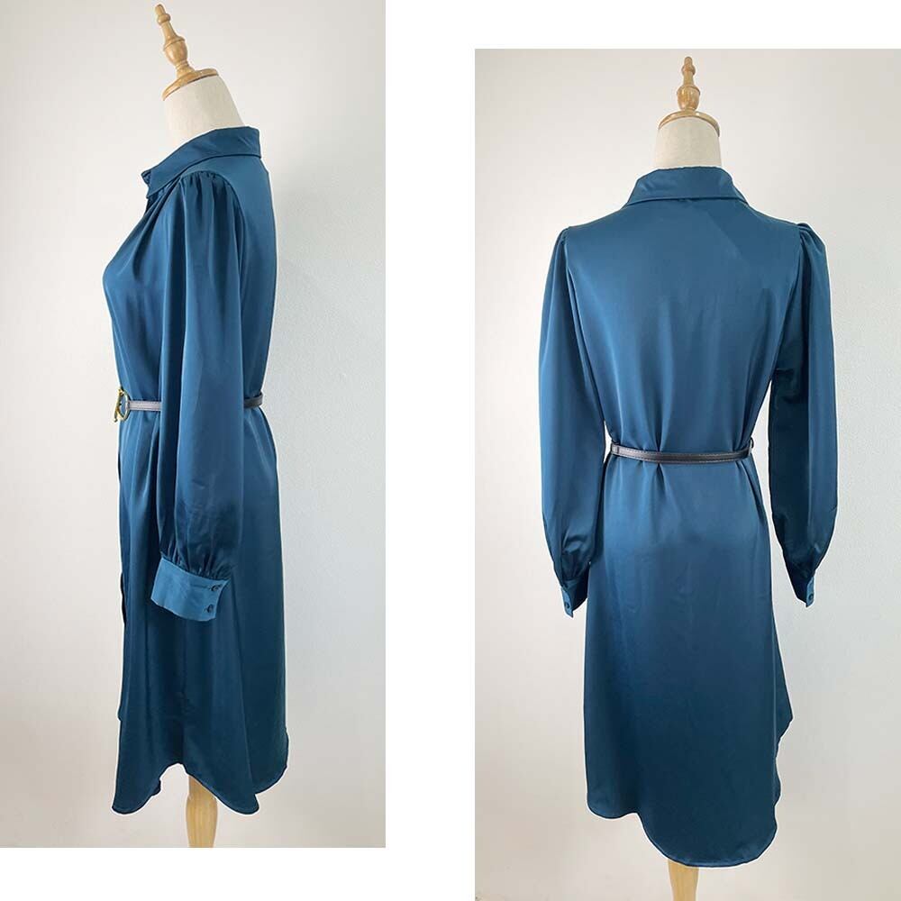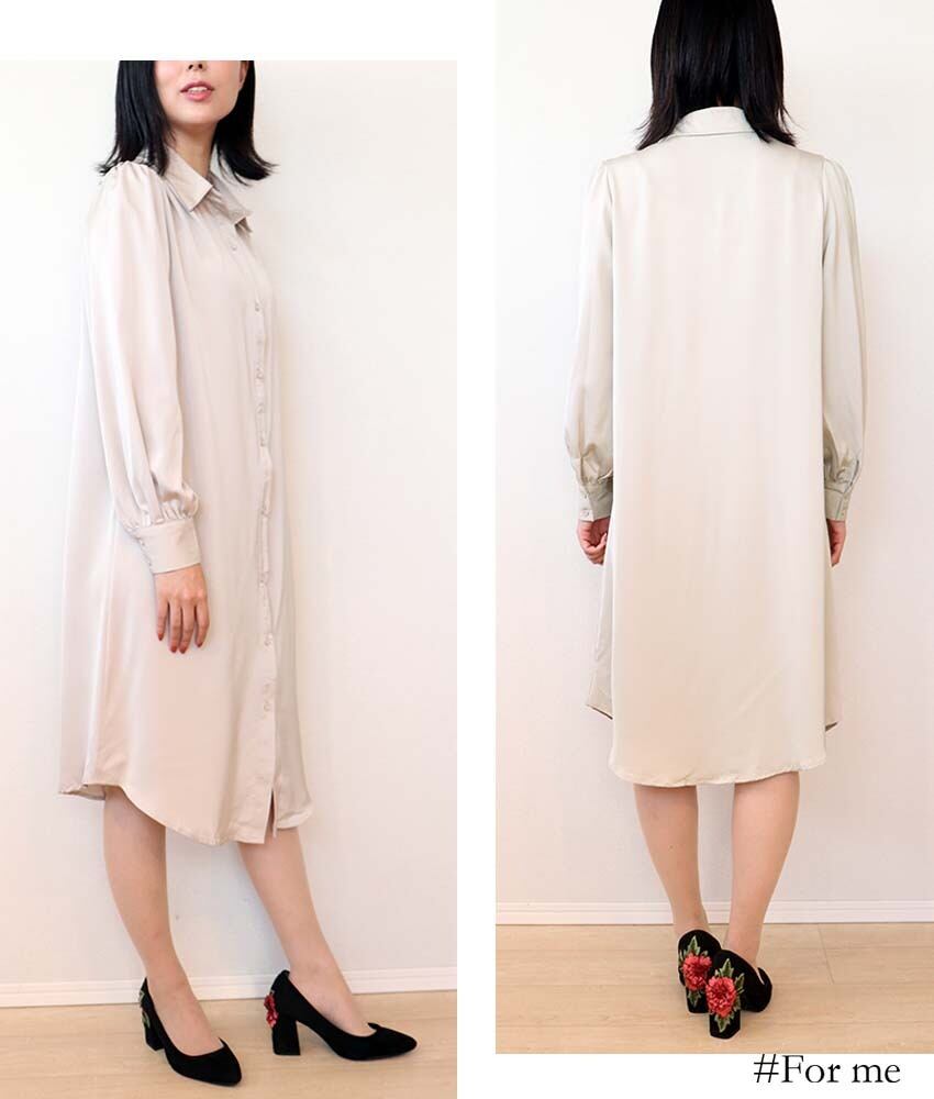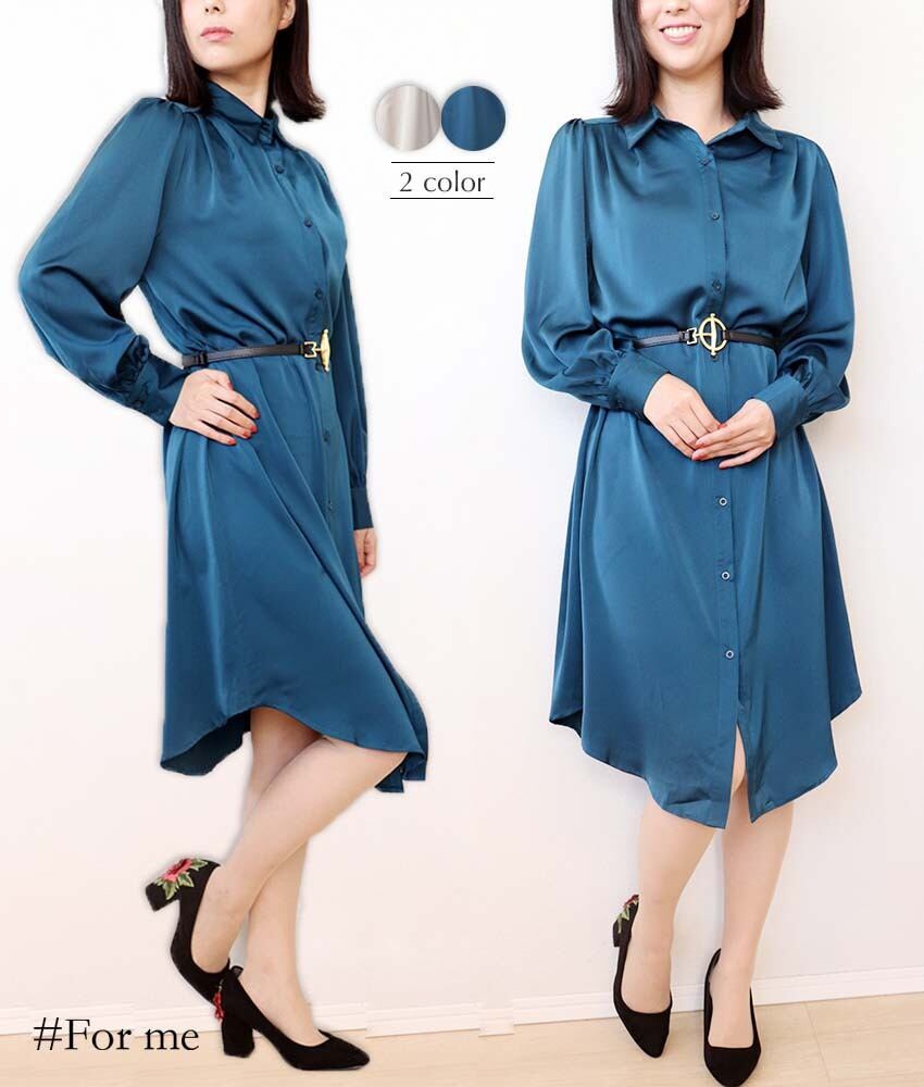 サイドの裾がアップしたスタイルアップワンピース。テロっとした生地感は肌触りもGOOD。個性的なベルトもセットです。