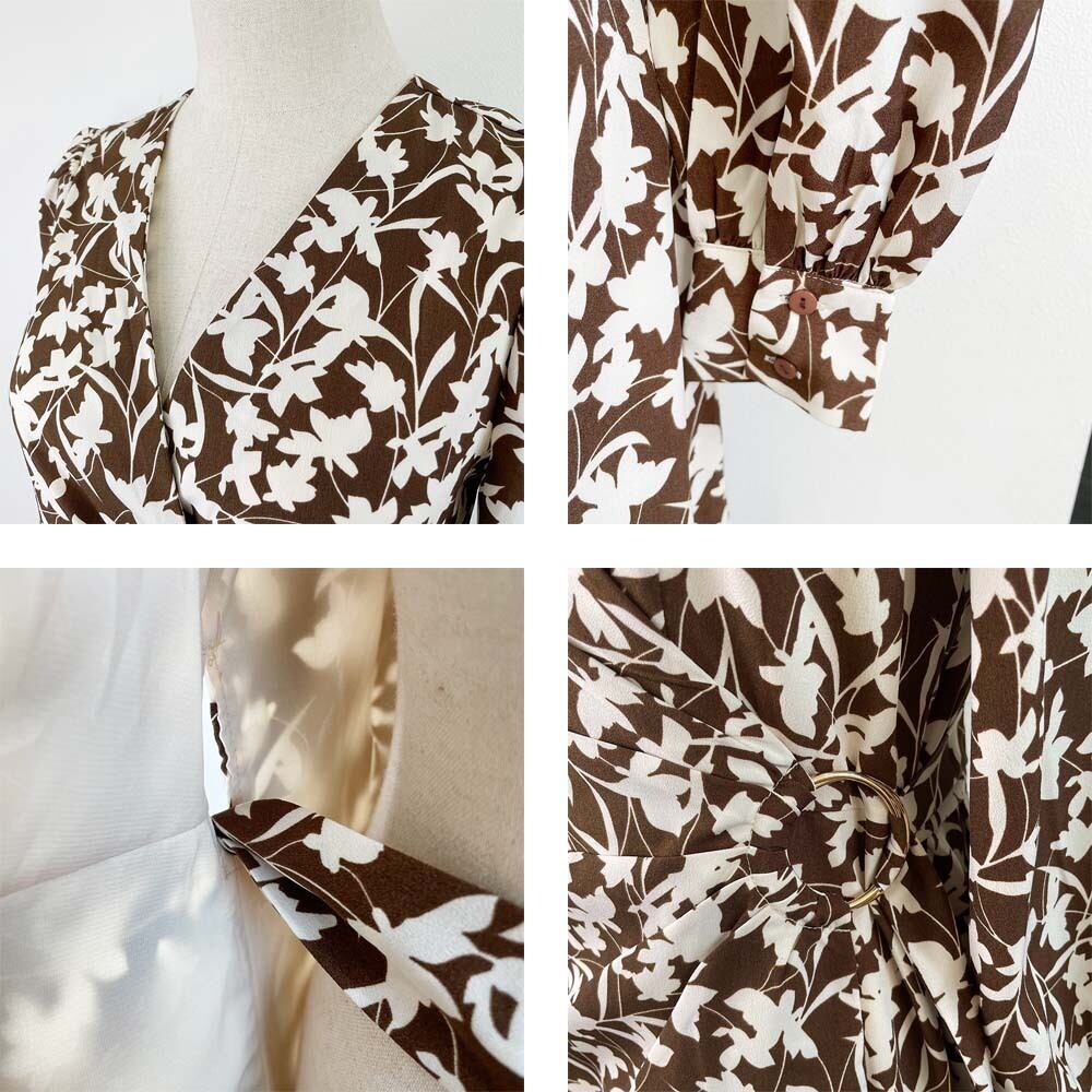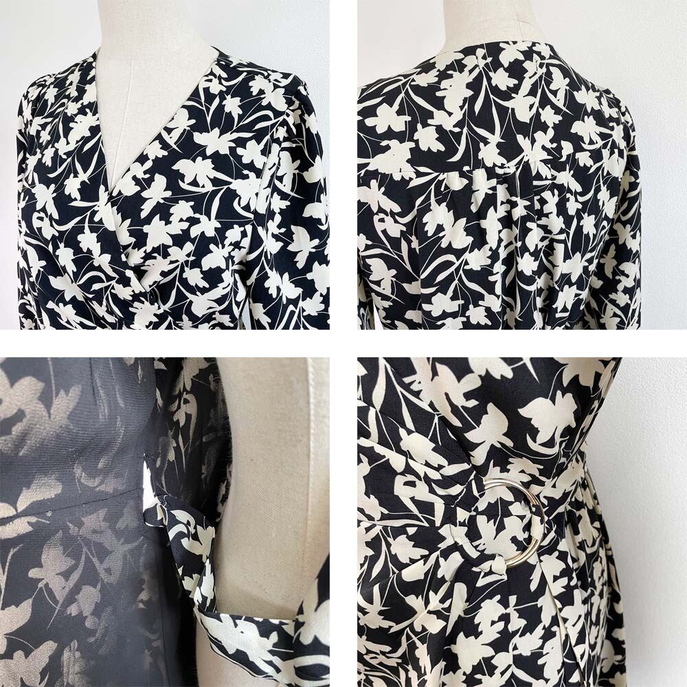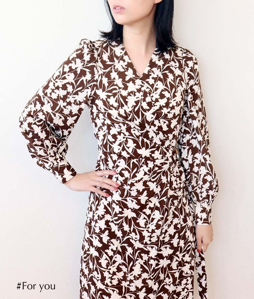 花デザインが全体にプリントされたシックなワンピース。サイドでベルト締めするスタイルでオシャレスタイルに。1枚で華やかな印象に。