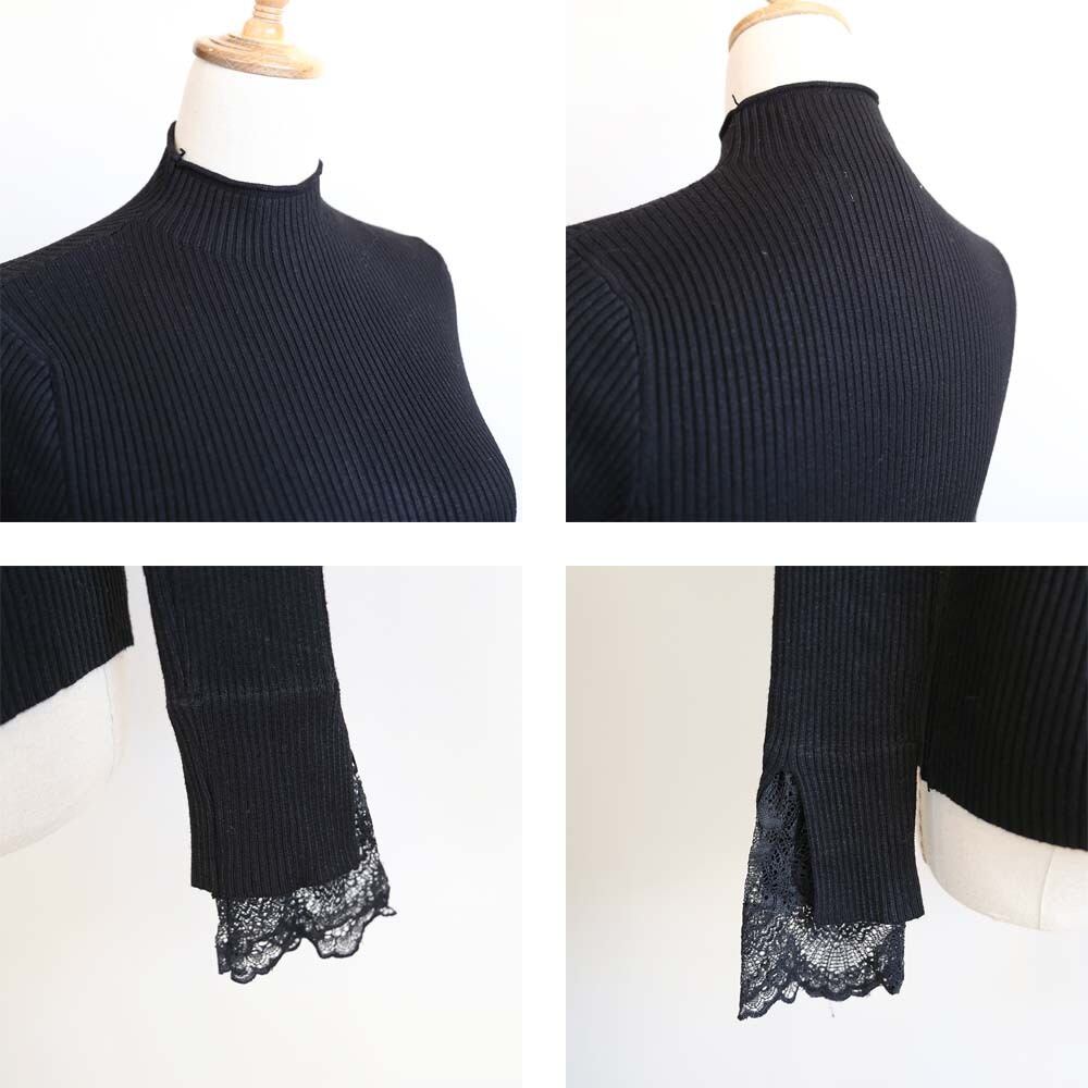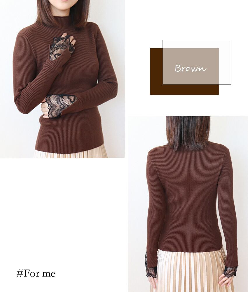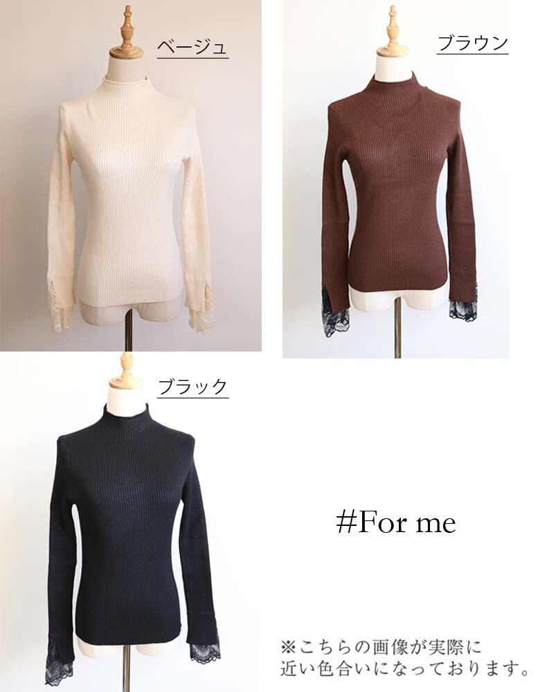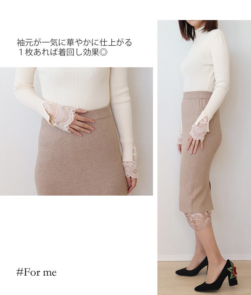 袖口スリットから覗くレースが魅力的なニット。暗くなりがちなニットに軽やかさをプラスしてくれます。