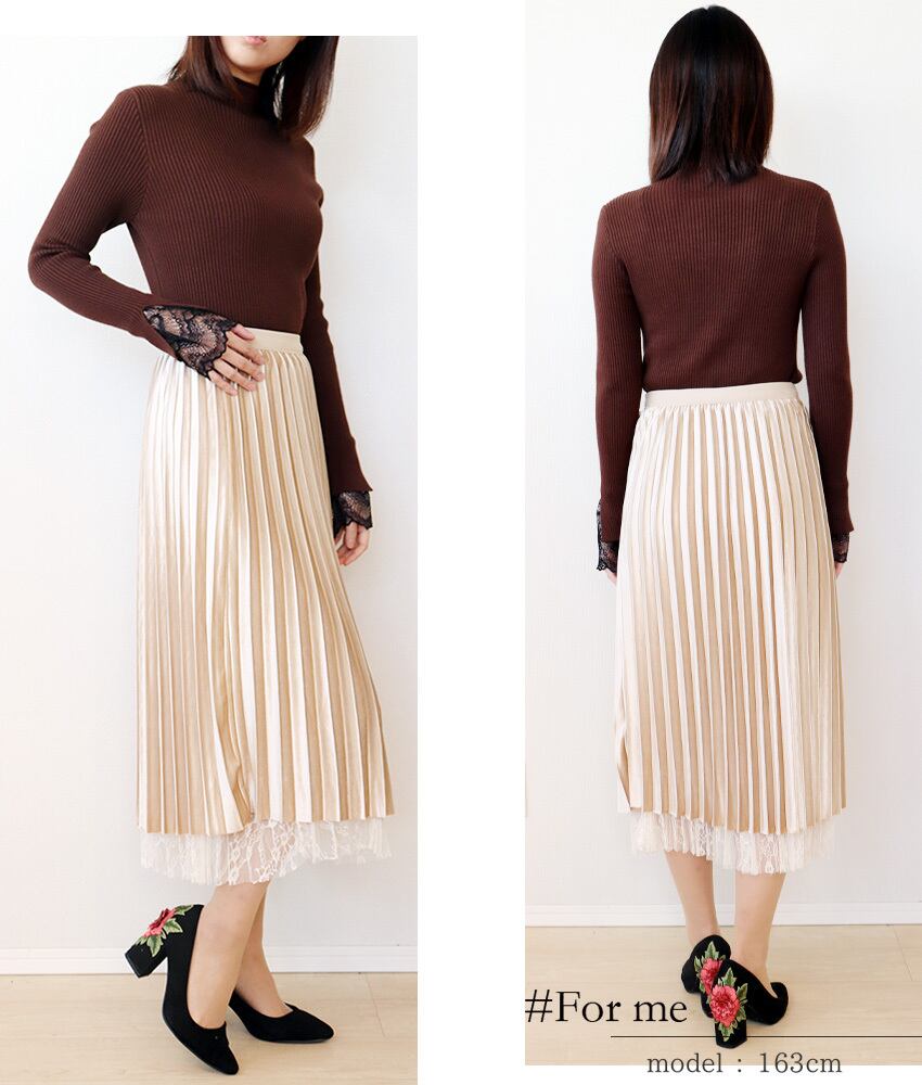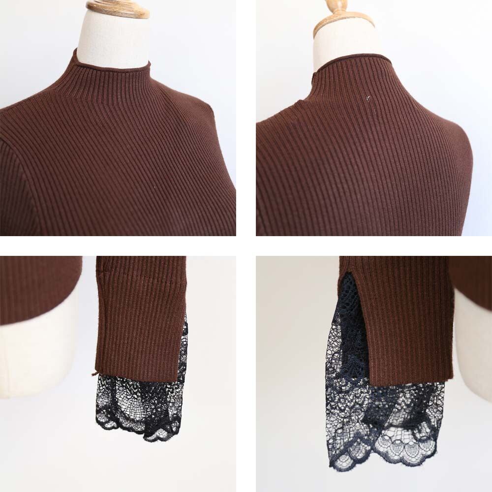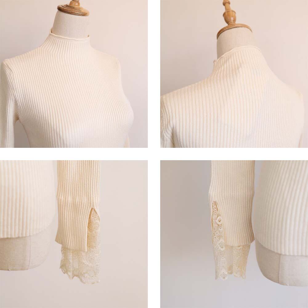 袖口スリットから覗くレースが魅力的なニット。暗くなりがちなニットに軽やかさをプラスしてくれます。