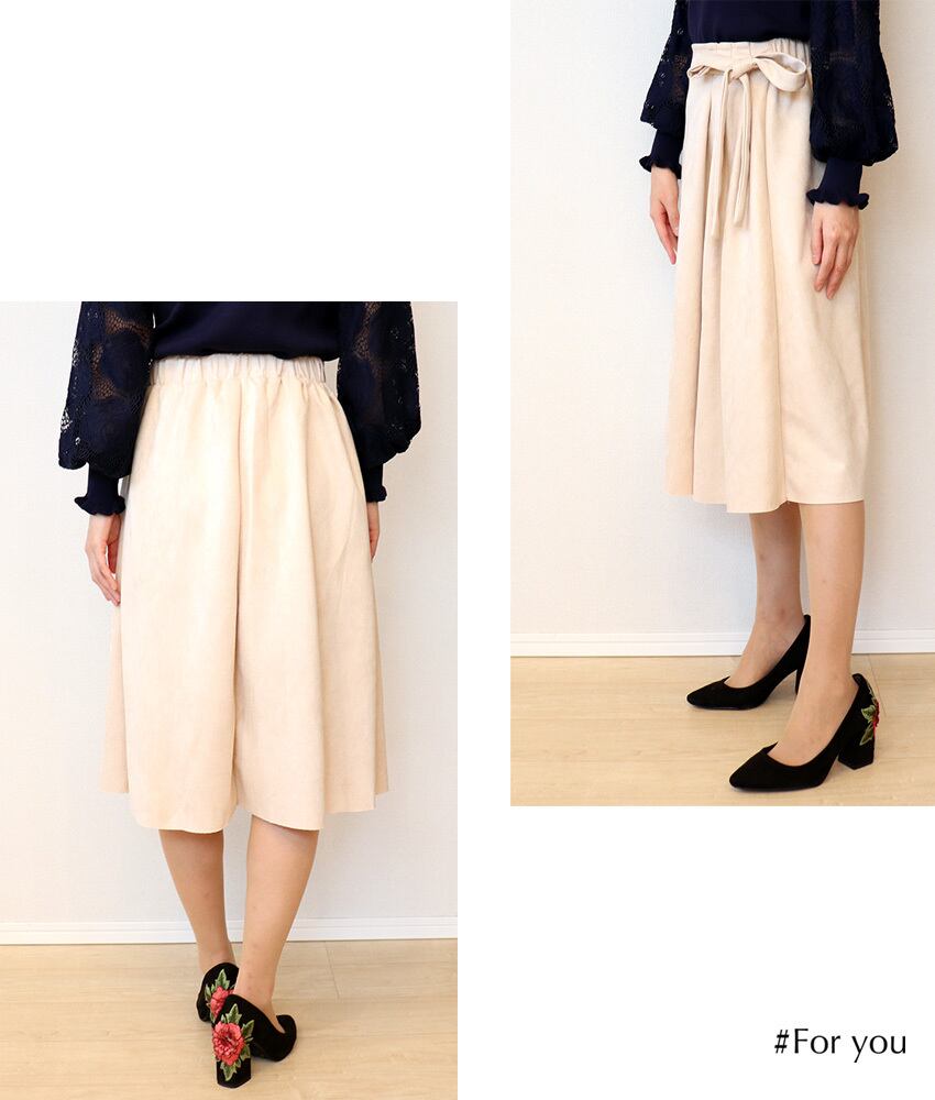 定番のフレアスカートにリボンがつくことで、一気にトレンド感が出ます。落ち着いたカラー展開が大人コーデを仕上げてくれます。