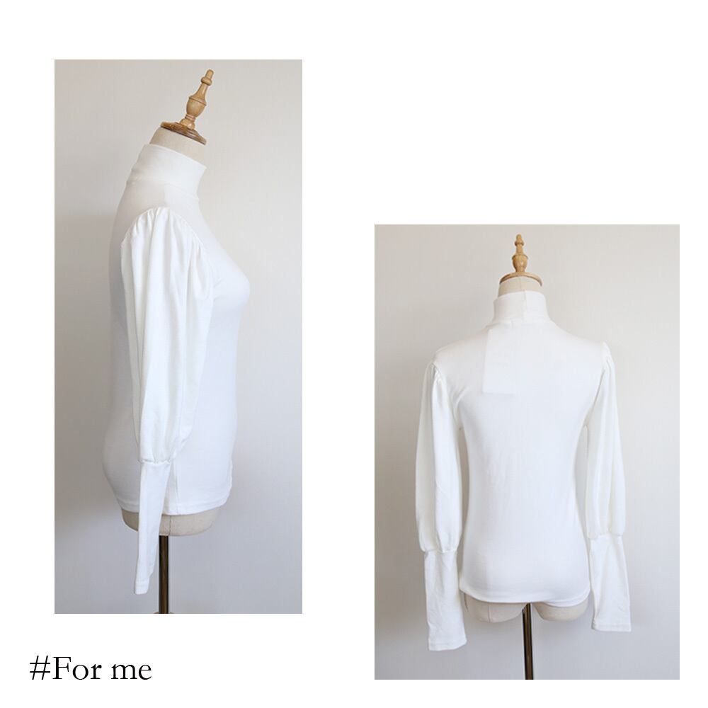 パフスリーブのようなボリュームある袖がレトロな雰囲気のカットソー。1枚で着ても重ね着してもおしゃれなアイテム。
