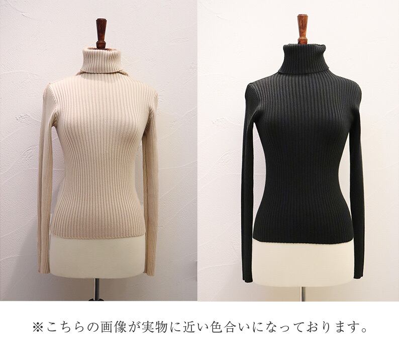 タートルネックが暖かく首元を包み、小顔効果も期待できるニット。ゆったりシルエットが大人カジュアルコーデに合わせやすい一品です。