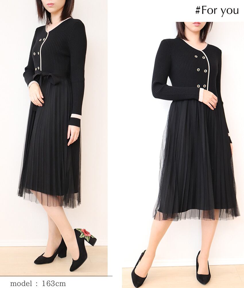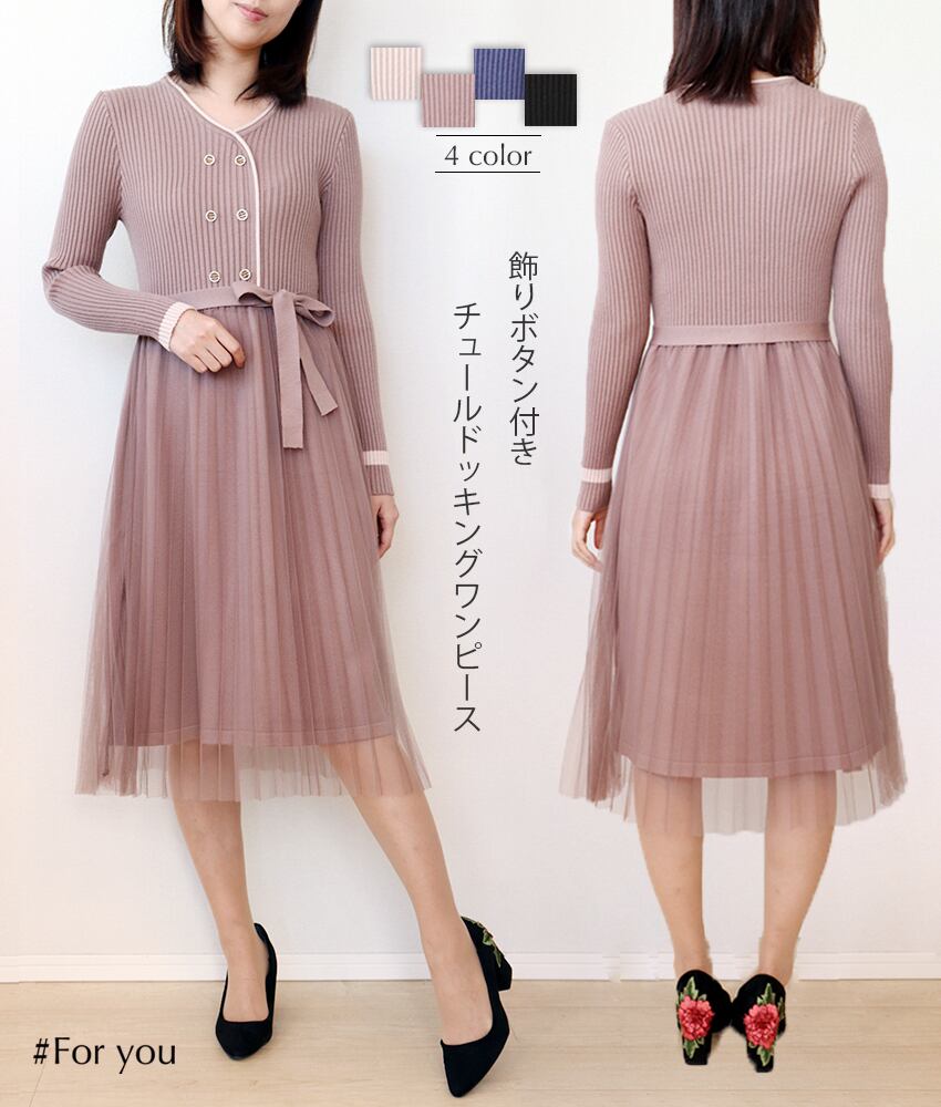 【再入荷】ボタン付きドッキングチュールワンピース_e0032011002