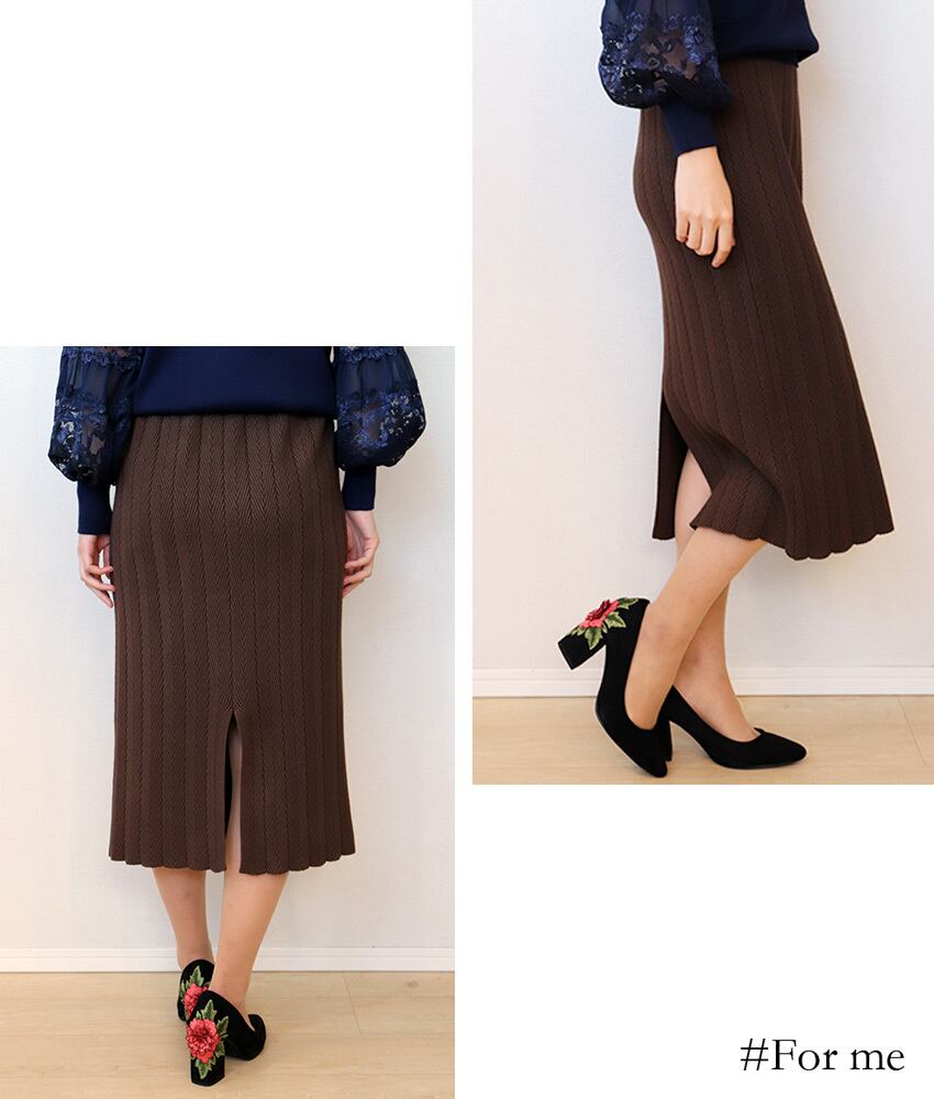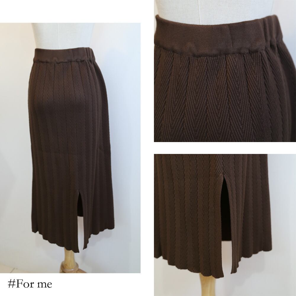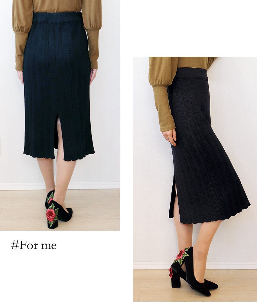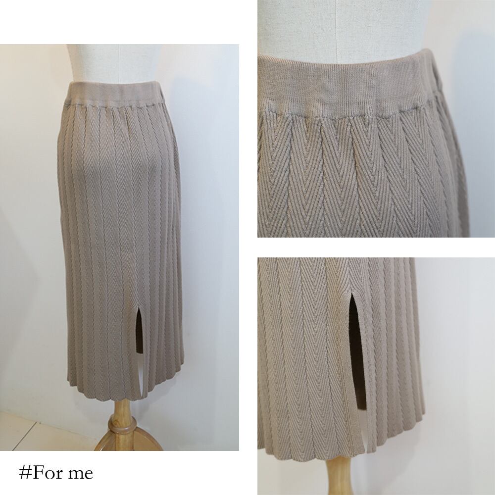 スリッドが入ったシンプルなミディ丈ニットスカート。シンプルなので、どのコーディネートにも合わせやすい優れもの。