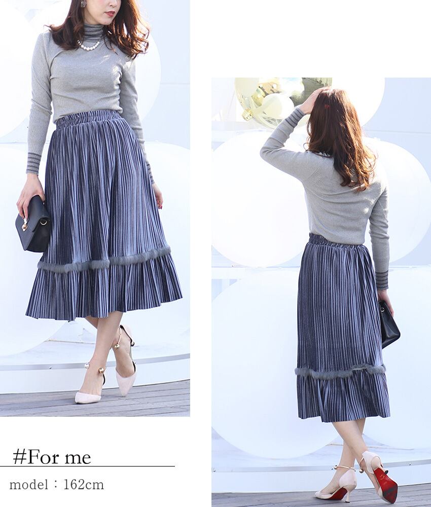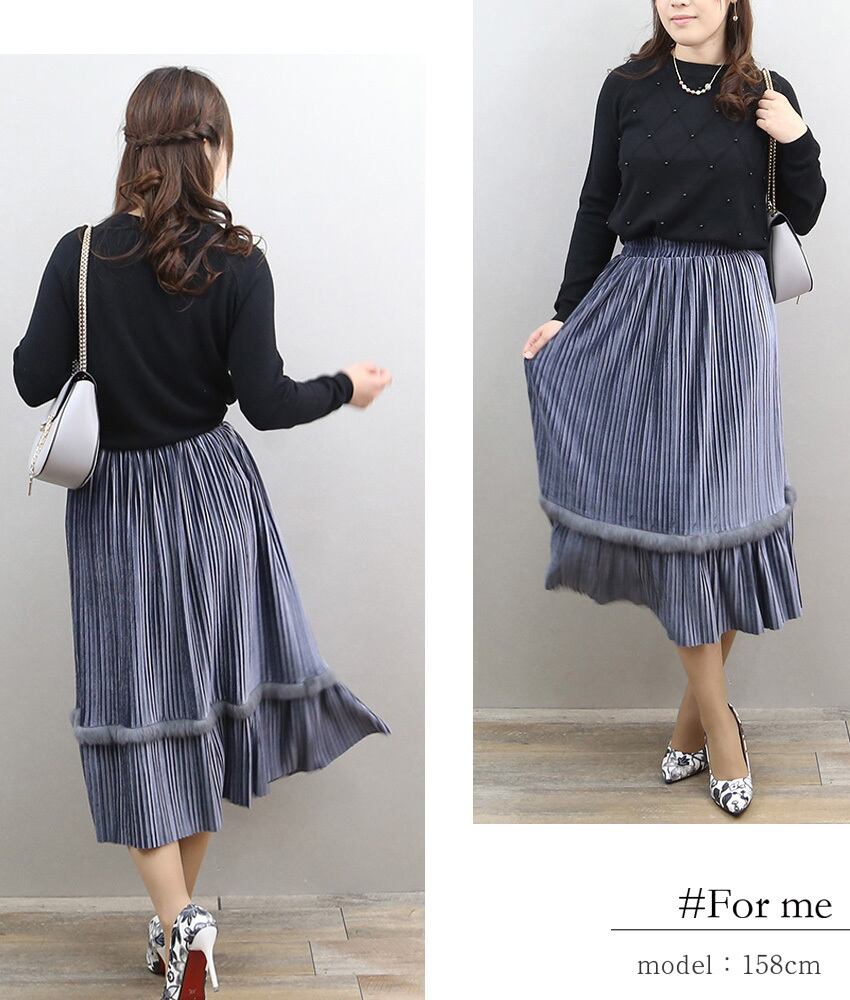 裾回りにもこもこデザインがついた冬らしいスカート。フレアが揺れるたびに、もこもこが躍ります。可愛くもきれいにもなれるおすすめスカートです。