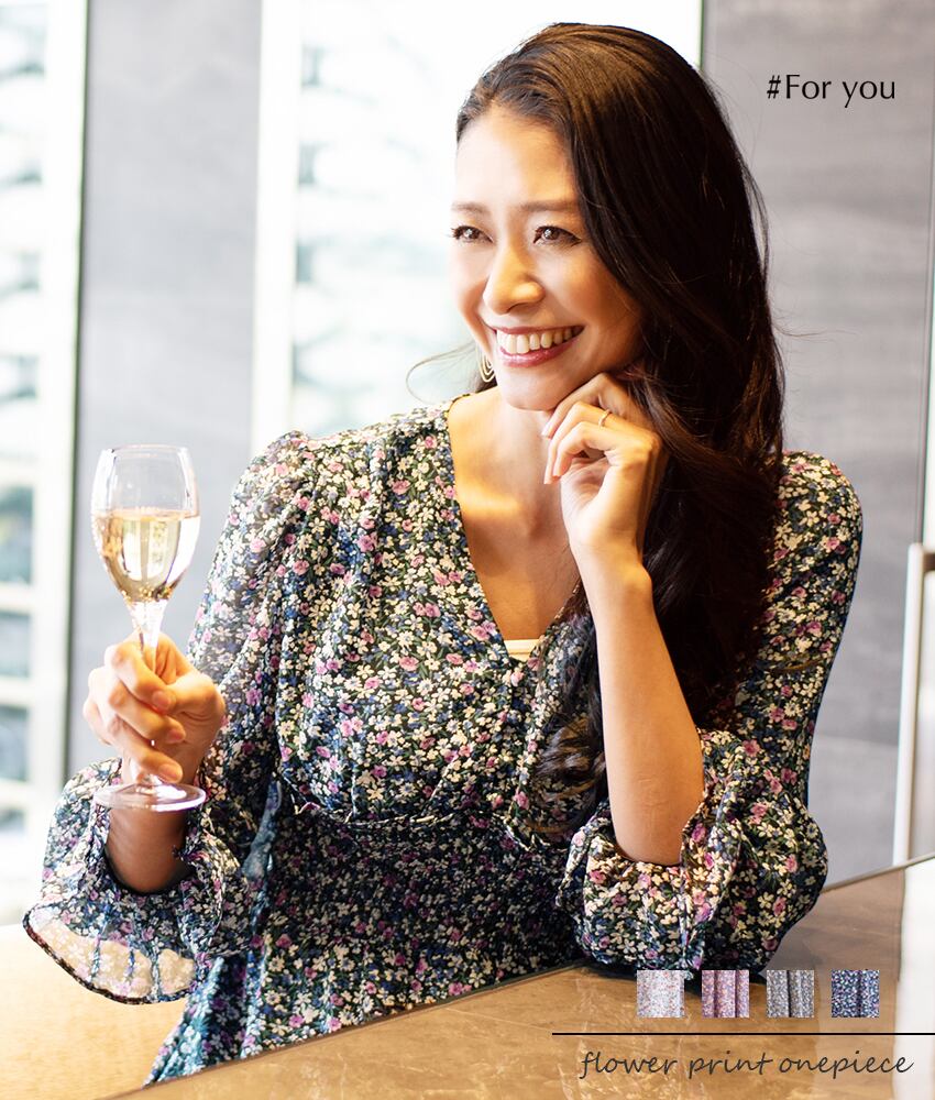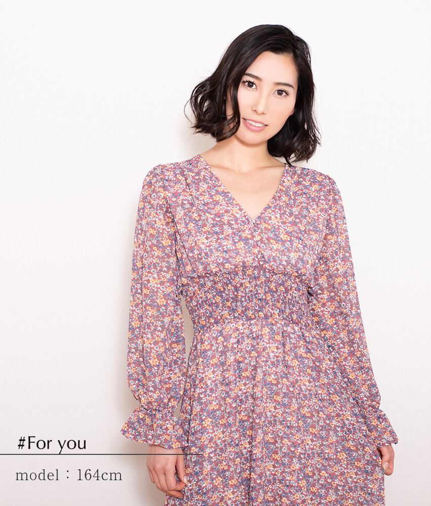 繊細な花柄にハイウエストが絞られたワンピース。スタイル良く表現してくれます。胸元のボタンや袖の絞りも、女性らしさを最大限に際立たせてくれるアイテムです。