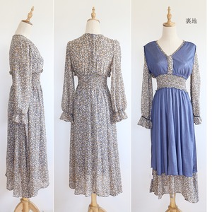 繊細な花柄にハイウエストが絞られたワンピース。スタイル良く表現してくれます。胸元のボタンや袖の絞りも、女性らしさを最大限に際立たせてくれるアイテムです。