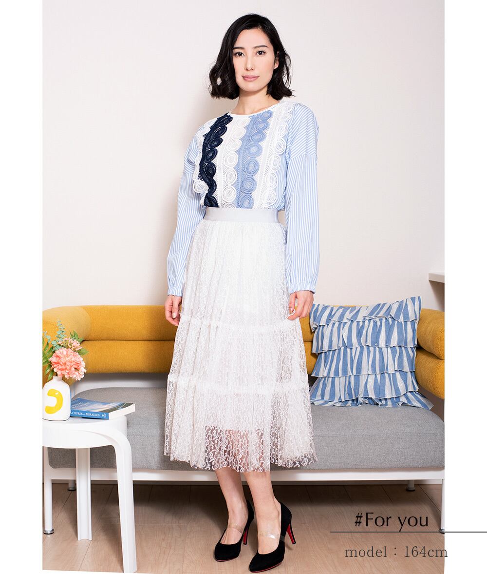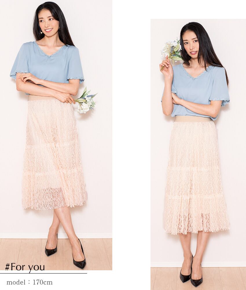 上品さとエレガントさを兼ね備えた総レーススカートが登場しました。レースの美しい模様が繊細に描かれており、女性らしい印象を与えます。上品な雰囲気を楽しみながら、女性の美しさを引き立たせるアイテムとなっています。シンプルなトップスと合わせるだけで、簡単におしゃれなコーディネートが完成。また、フレアなシルエットとウエストのリボンデザインが腰回りをすっきりと見せます。結婚式やパーティーなどのフォーマルな場での着用はもちろん、カジュアルなシーンでも着こなせるアイテムです。