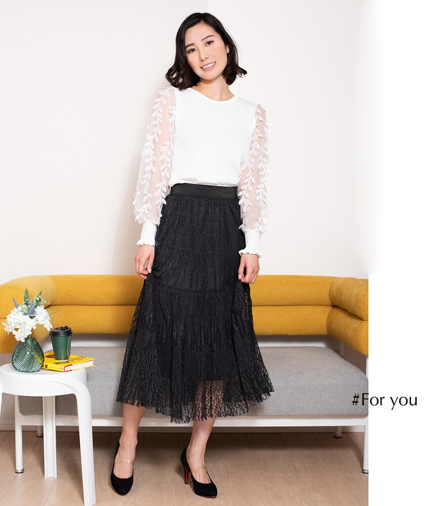 上品さと可愛らしさを兼ね備えた、総レーススカートをご紹介します。フィット感のあるシースルーな素材が、大人の女性ならではのセクシーさを演出します。