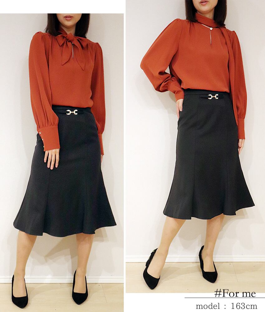 スカーフ風をつけたようなオシャレなスタイルに着こなせる優れものブラウス。巻いてもリボンにしてもスタイリングは自由♪首元と袖にはきらめくボタン付きで、細かいところまで大人っぽく仕上げてくれる1枚。