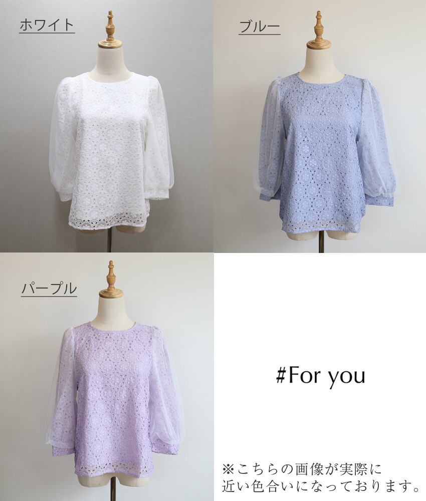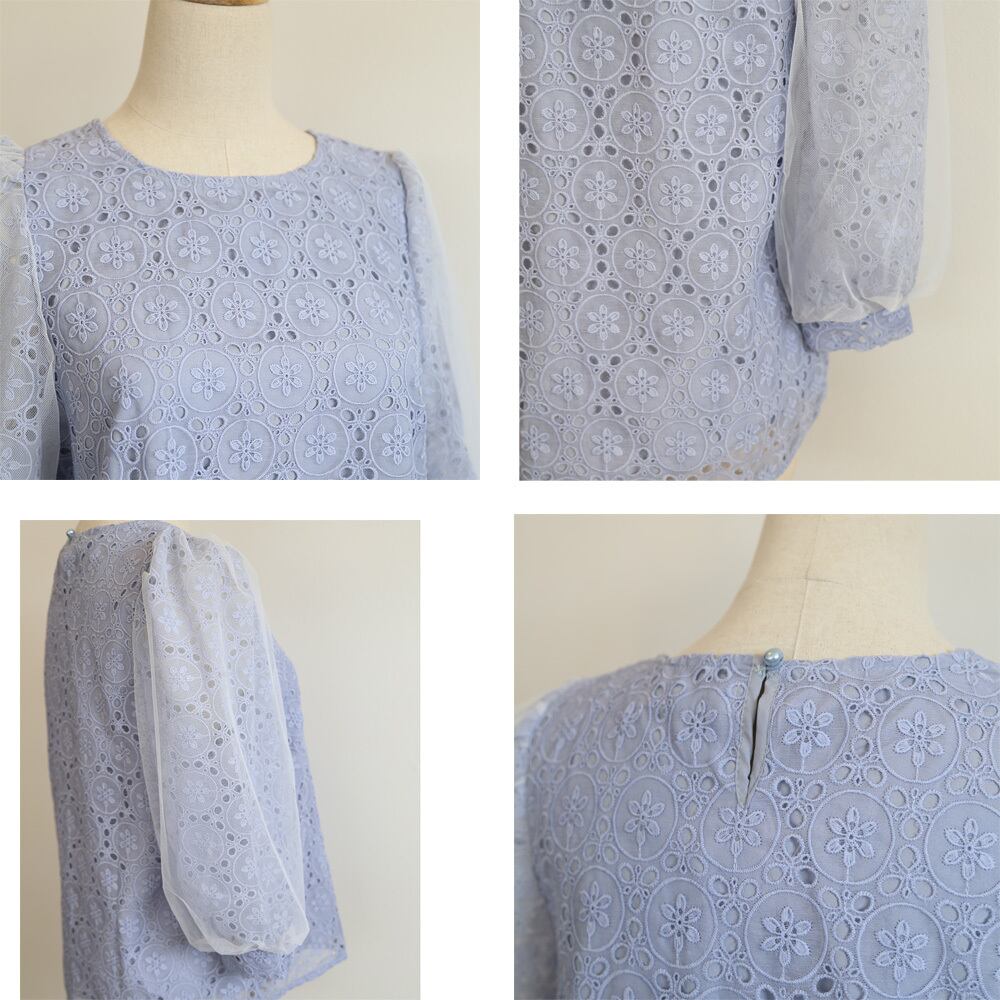 全体的に花レースデザインになったおり、袖部分がシアーレースに覆われています。
