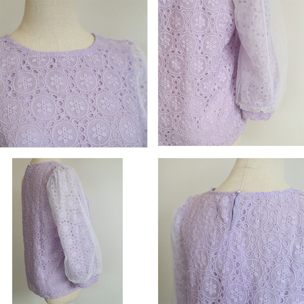 袖口がフリルデザインになっており、華やかな印象を与えるアイテムです。