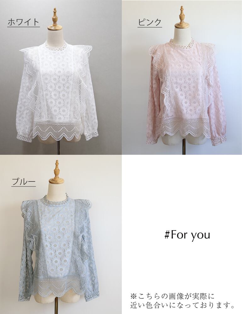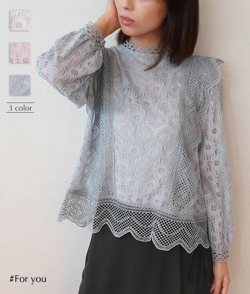 【再入荷】花柄ウェーブデザインのレースブラウス_a0022008013