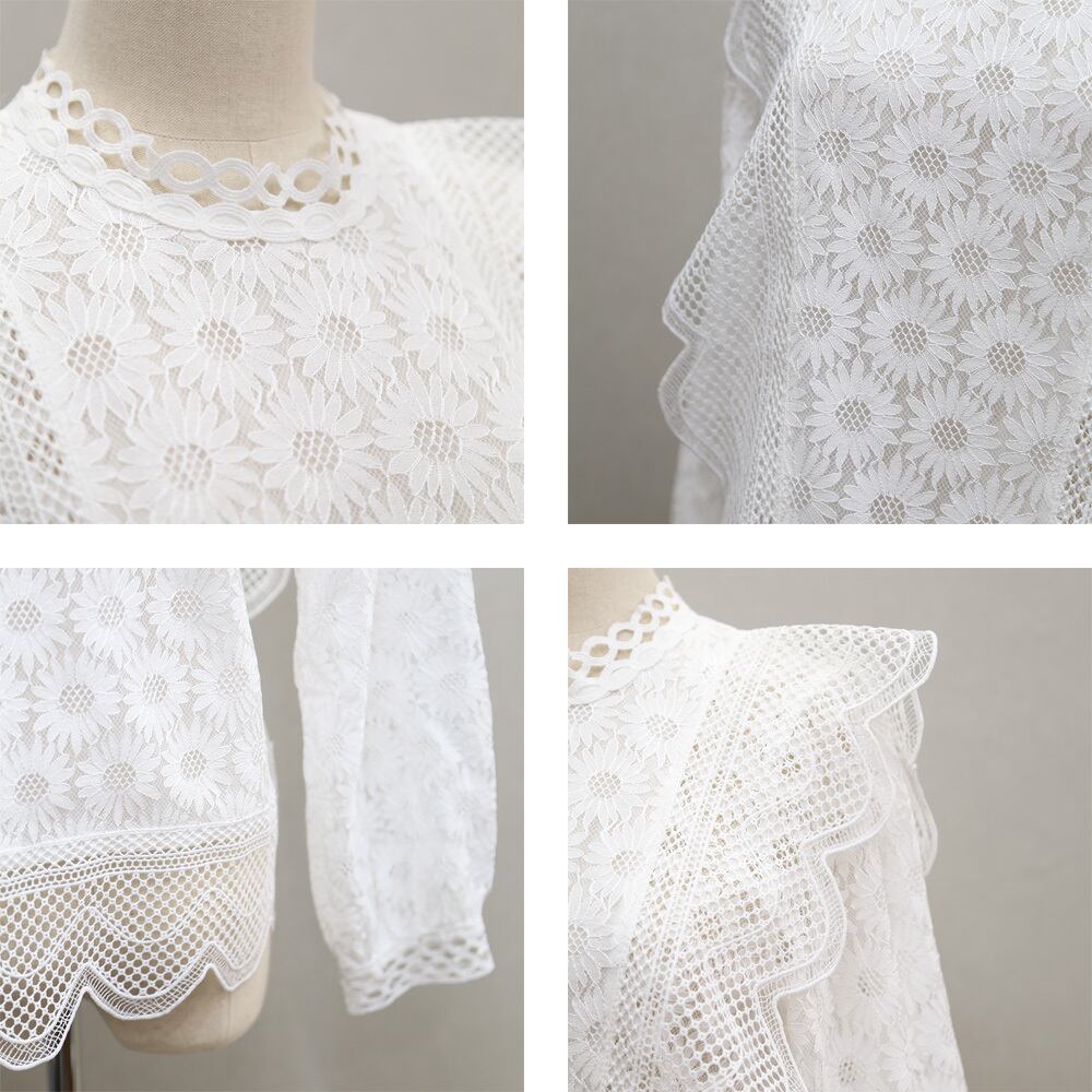 可憐な花柄とウェーブデザインが魅力のレースブラウスです。