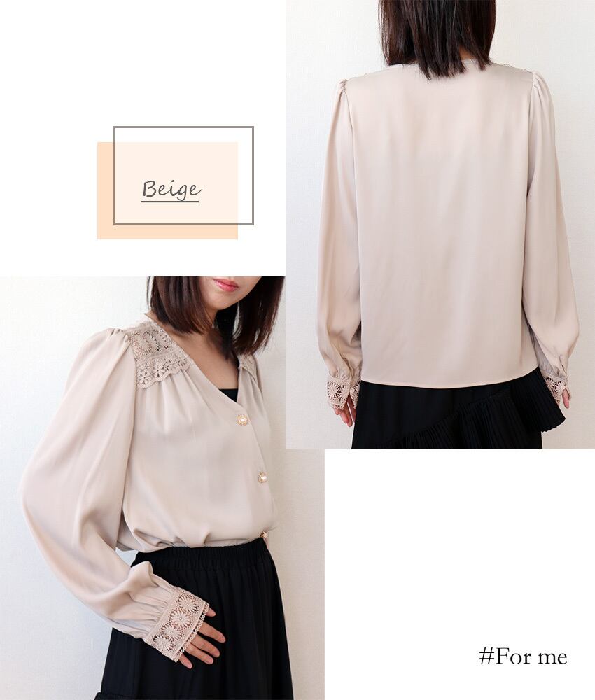 肩+袖部分は花柄レースをあしらった華やかブラウス。サラッとした生地感も肌触り良く着用できます。カーディガンとしてもコーディネートできます。
