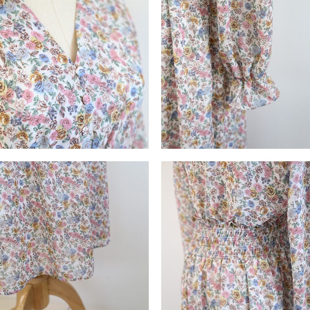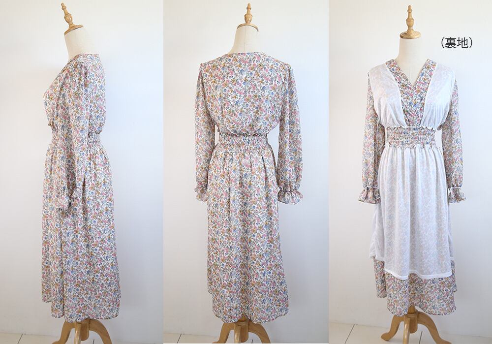 【再入荷】ウエスト絞りの小花柄フレアワンピース_e0002101029