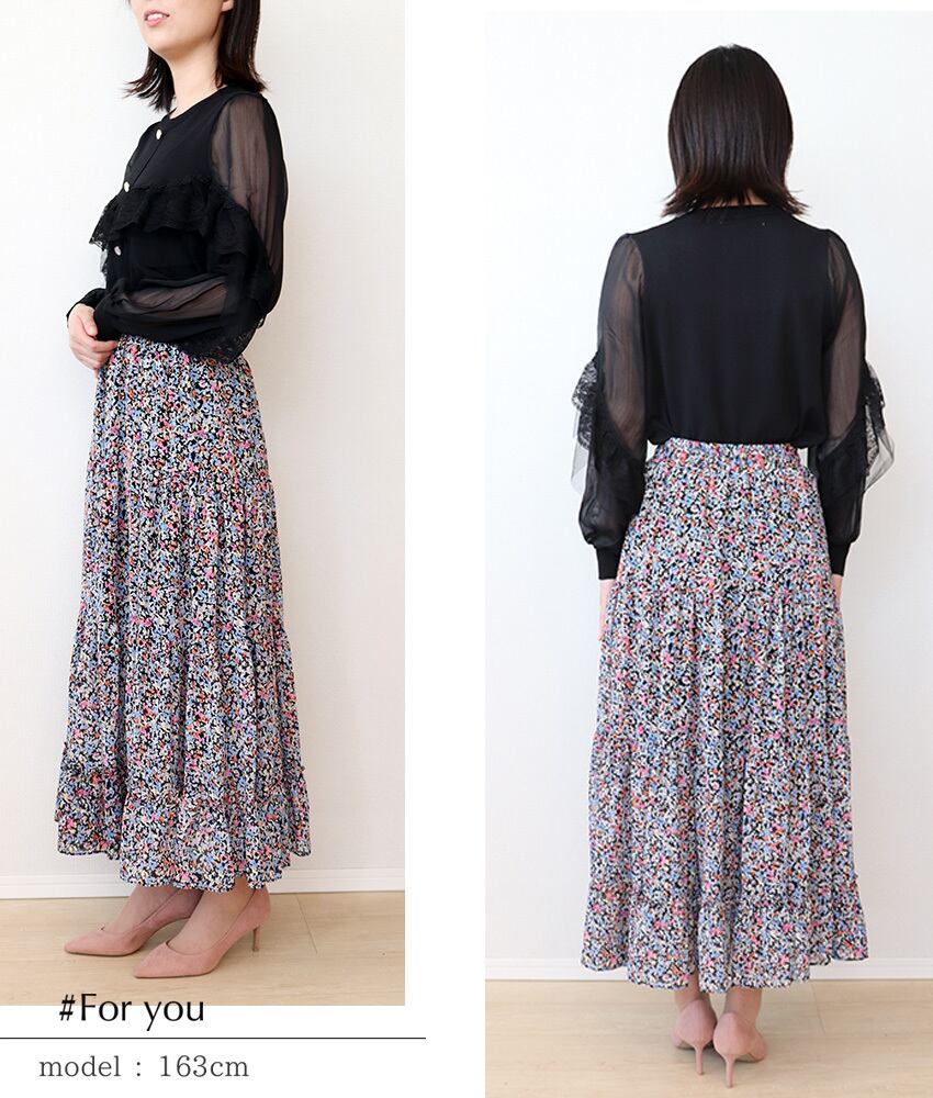 【再入荷】小花柄のフリル付きフレアスカート_b0002103008