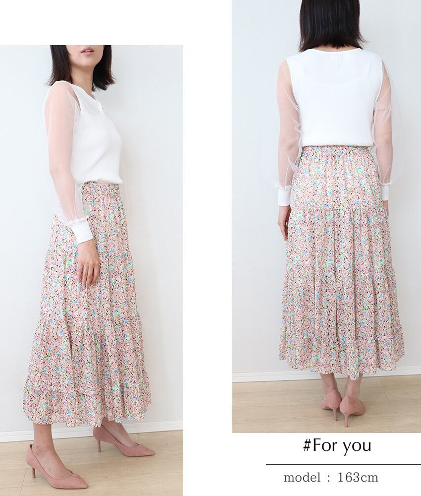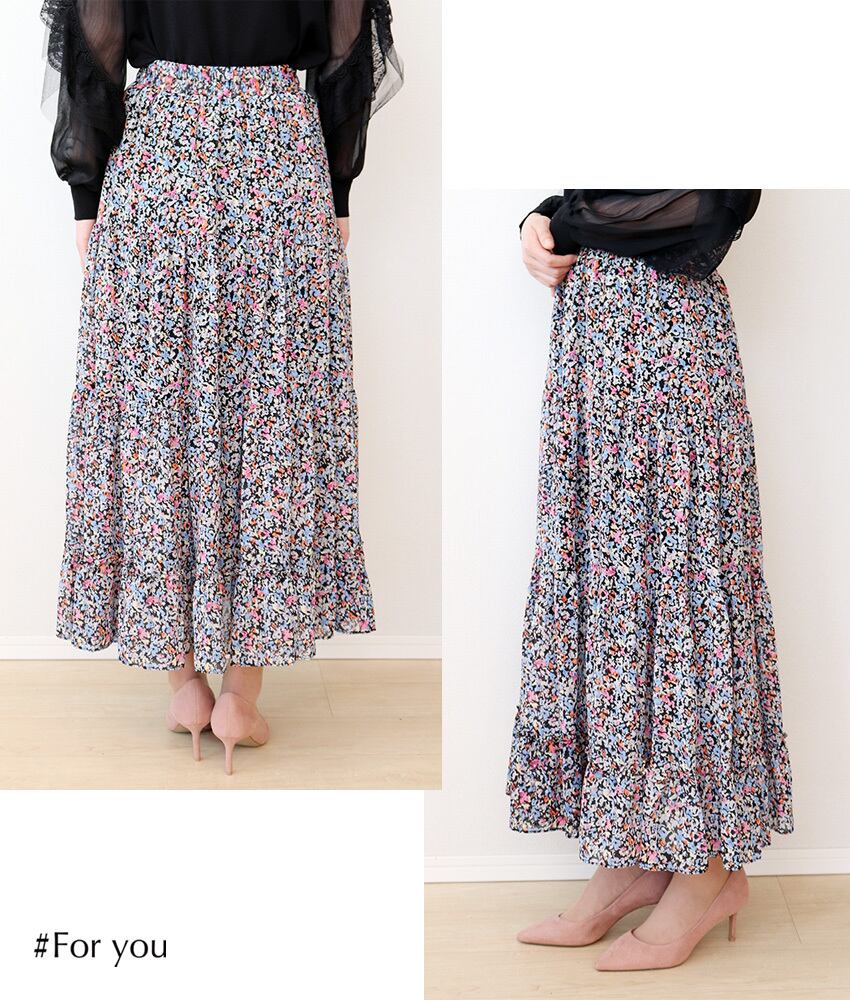 【再入荷】小花柄のフリル付きフレアスカート_b0062103009