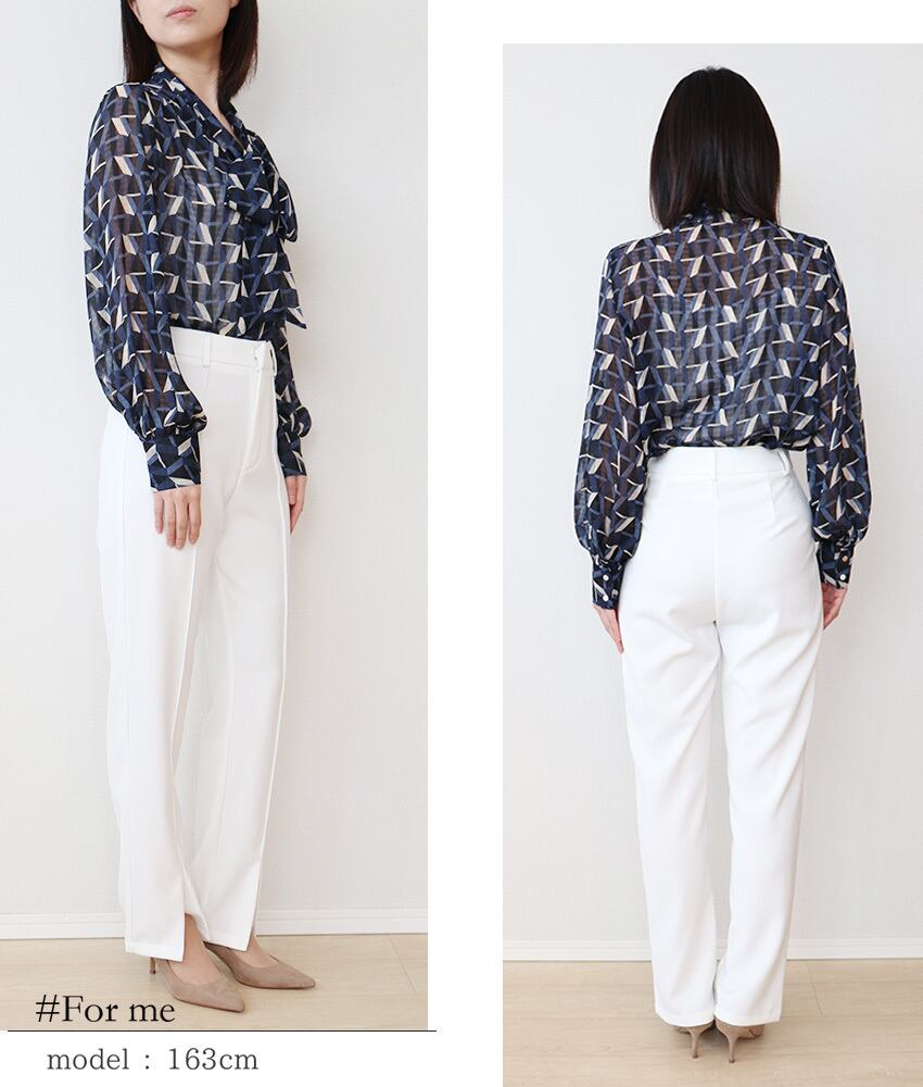 エレガントなガラス風デザインが特徴の、大人女子におすすめのブラウスが再入荷しました。袖や胸元、バックスタイルに施されたガラス風デザインが、おしゃれで上品な印象を与えてくれます。シンプルなデザインなので、オフィスやデートなど多くのシチュエーションに対応できる優秀アイテムです。