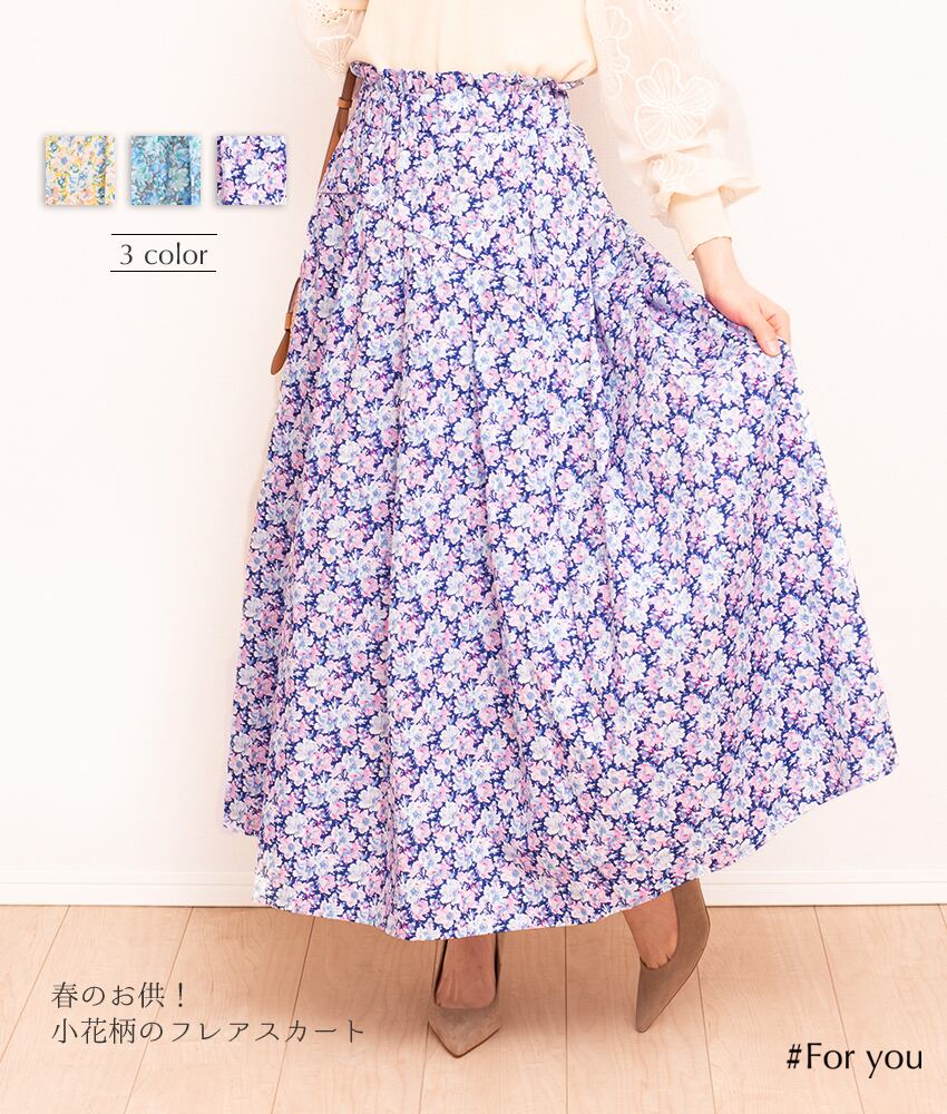 かわいらしい小花柄のフレアスカートです。