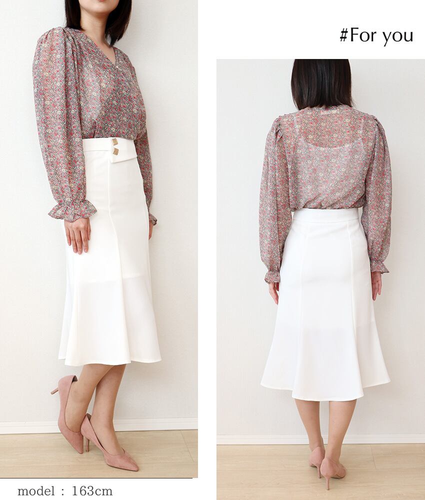 小花柄の透け感ブラウスが再入荷しました!トレンドのフェミニンなスタイルにぴったりなブラウスです。透け感が上品でエレガントな印象を与えます。柔らかな生地で着心地も抜群です。ビジネスシーンからカジュアルまで幅広く合わせることができ、春夏のおしゃれはこの一枚から始まります。ウエスト部分が絞られたデザインで、スタイルアップ効果も抜群。気になる二の腕も隠してくれる長めの袖がうれしいポイントです。