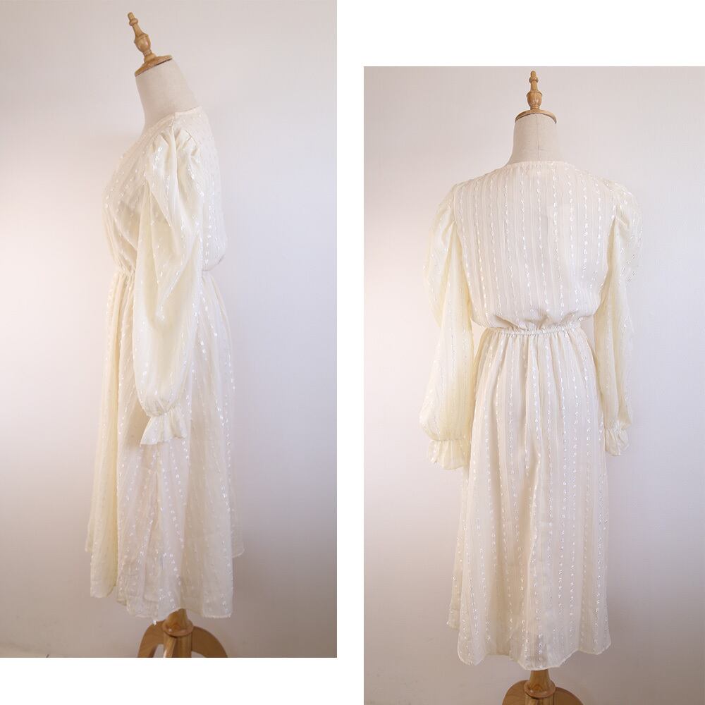 フワッとしたショルダーデザインが可愛らしいワンピース。気になる腕のカバーにもなります。ウエストのゴムがスタイルアップにも繋がります。柔らかいパステル調が春らしい雰囲気に。