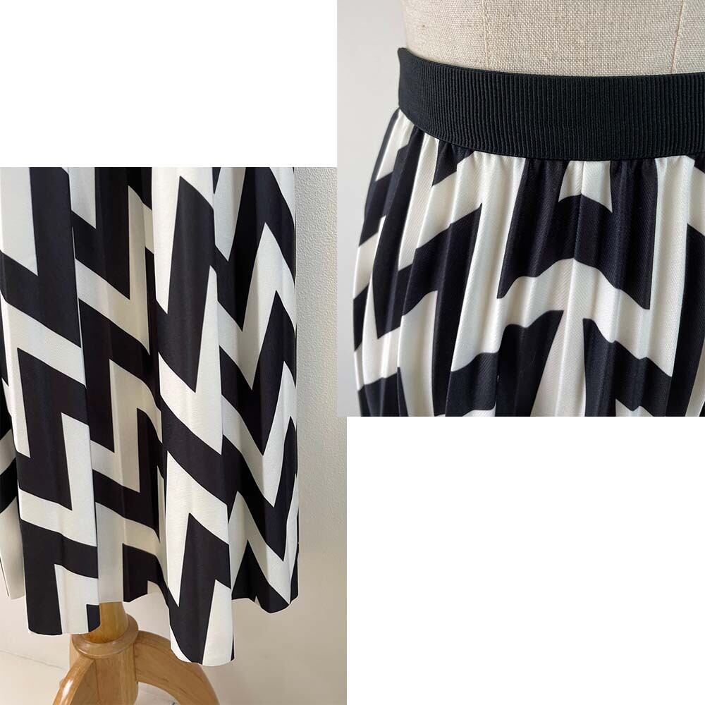 奇抜なデザインで目を惹くプリーツスカート。シックな雰囲気に包まれます。しっかりとした生地感なので、透ける心配はございません。