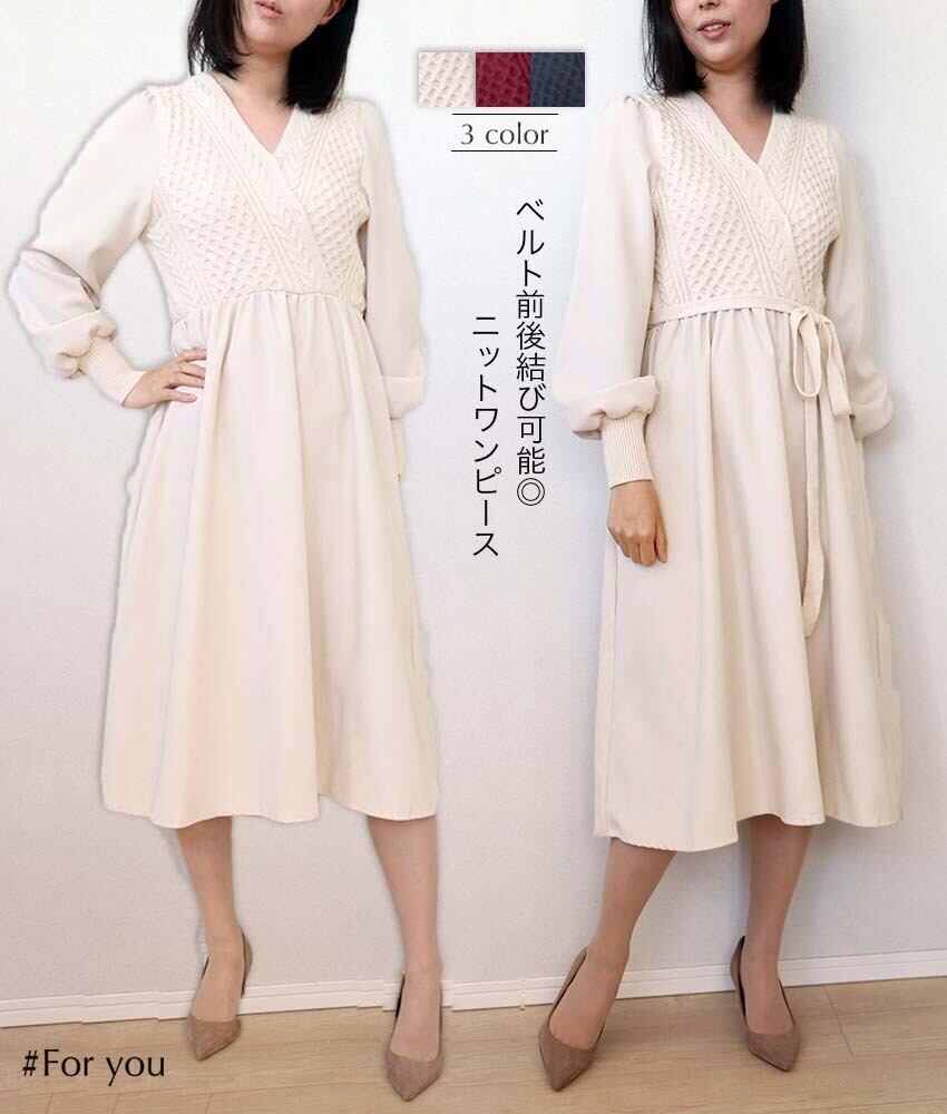 ウエストにベルトが付属したニットワンピース。トップス部分はニット生地で、袖とスカート部分はスエード生地で違いを楽しめるデザインに。3色展開でどの色も雰囲気が変わるアイテムです。