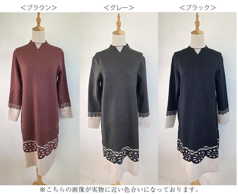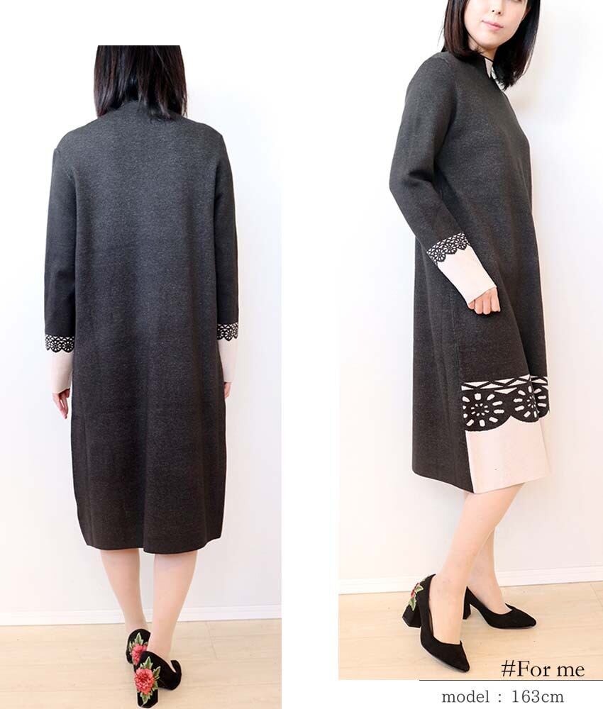 袖&裾が丸デザインのカジュアルニットワンピース。ハイネックで暖かい印象になります。柔らかいフエルト生地で、ゆったりとした着心地の良いワンピース。