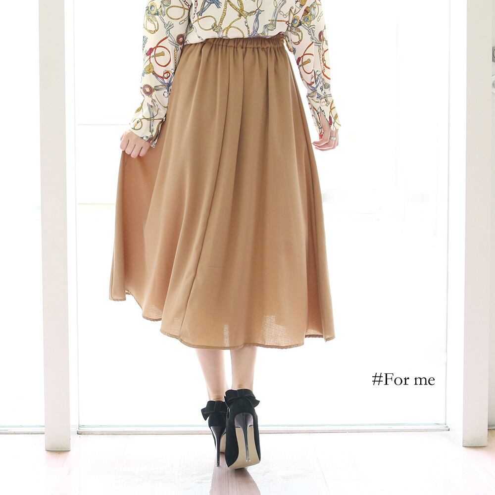 飾りボタンが印象的なフレアスカート。裏地がないため、静電気が発生しやすいです。着回し必須アイテムです。