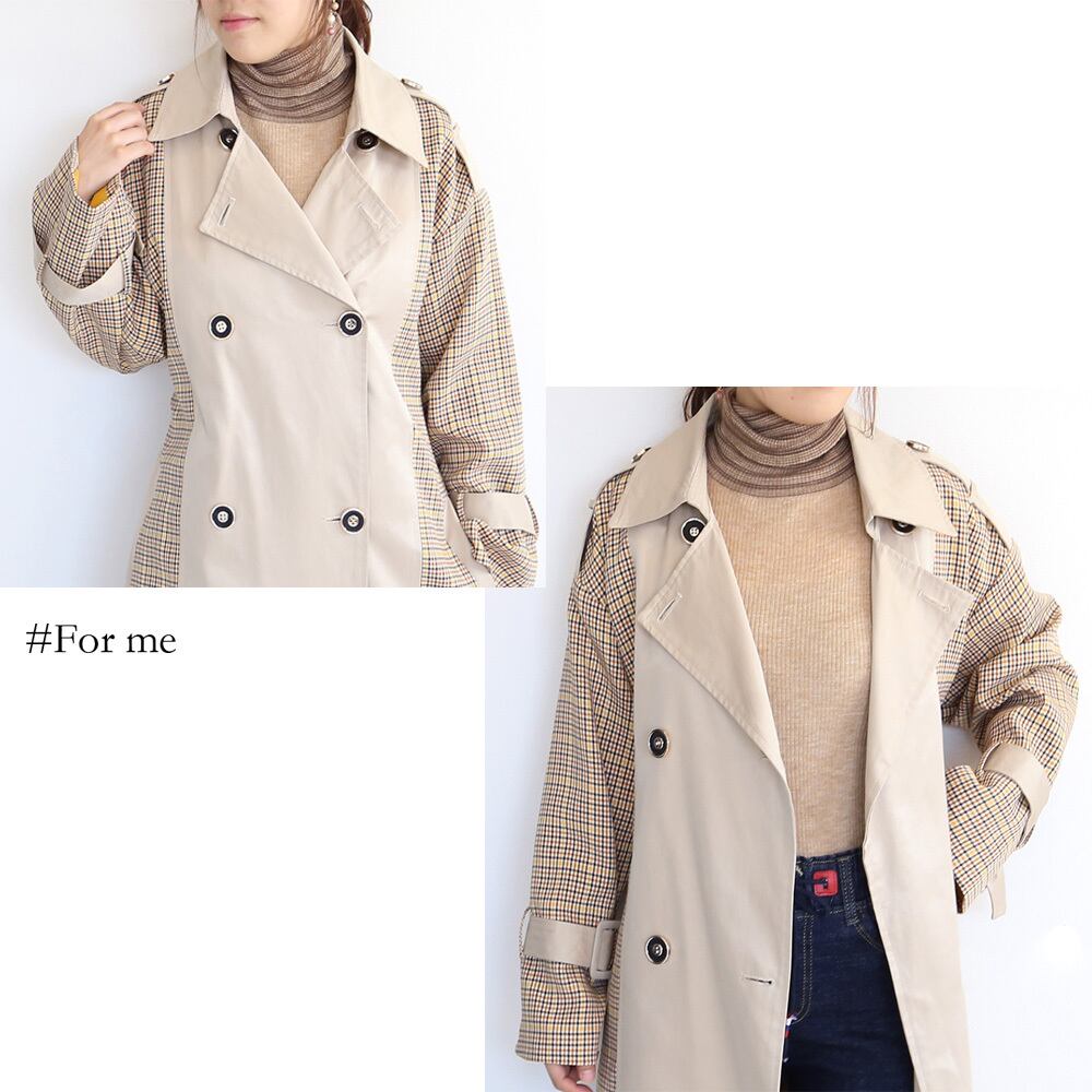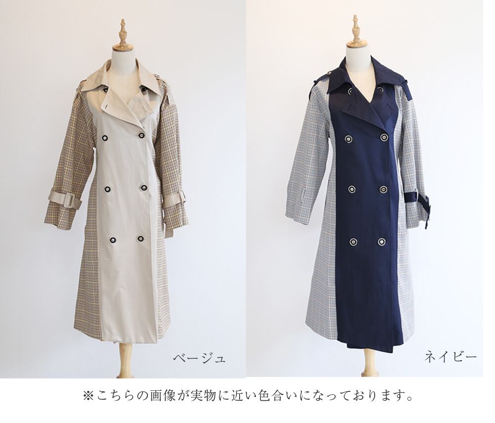 サイドがチェック柄のロングコート_g0141808045