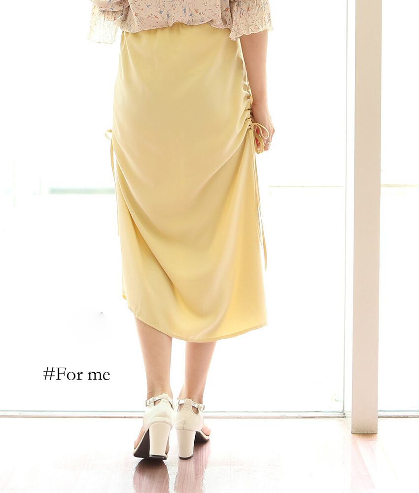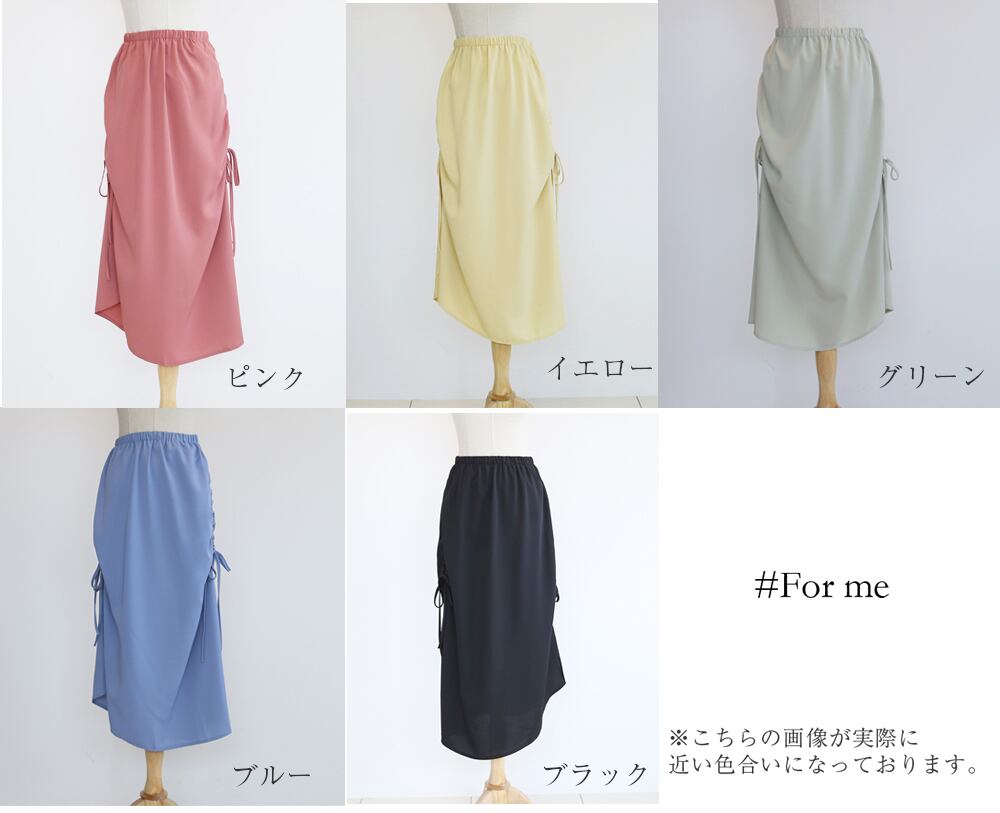 両サイドを上げることで、脚長効果になるスカート。さりげないスリットもポイントです。裏地がないですが、しっかりとした生地なので透ける心配もありません。カラーバリエーションも多いのが嬉しいところ。