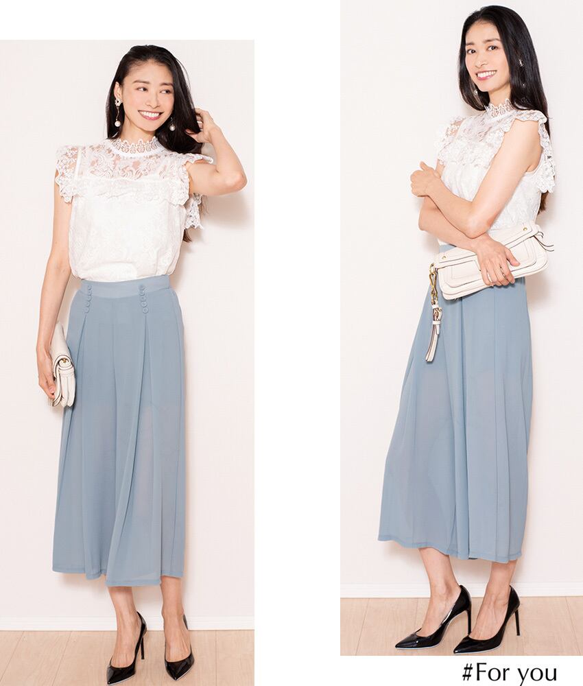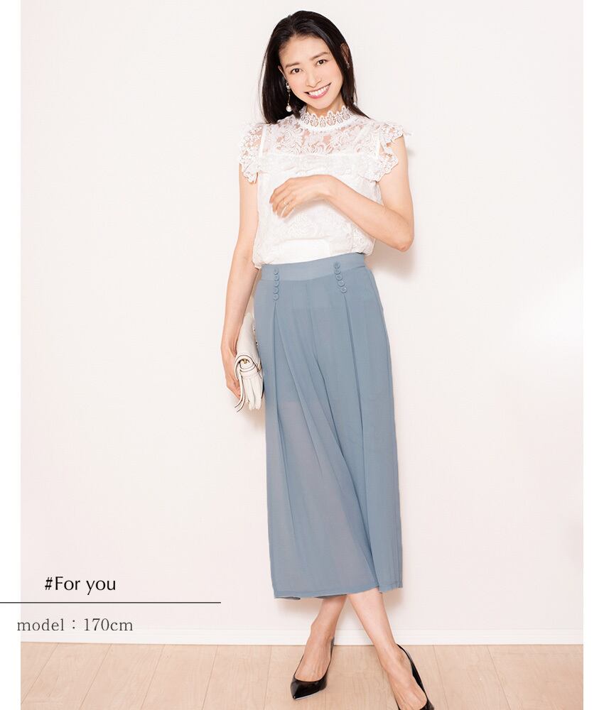 首元から袖口、胸元までたっぷりと施されたレースが大人カワイイ。今年も大流行の花レースのタンクトップ。袖口もレースがふんわりと包んでくれるので、華奢魅せ効果ありです◎