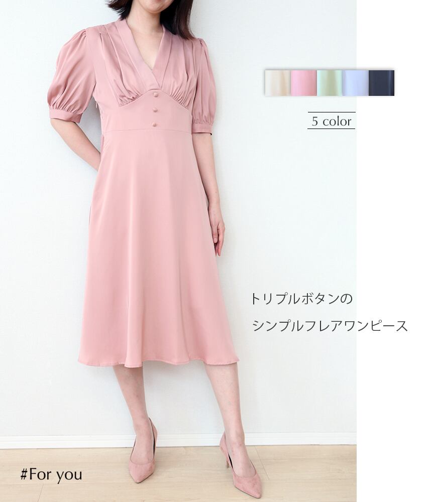 ウエストトリプルボタンのシンプルフレアワンピース_e0002105001