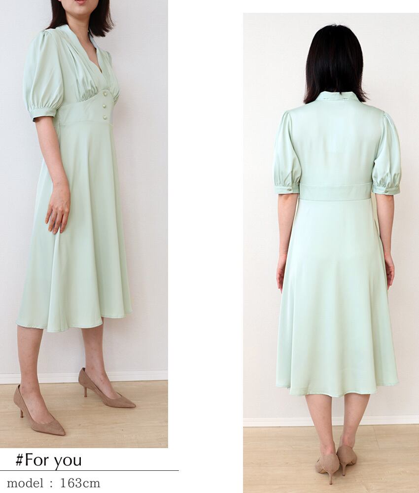 胸元に3つのボタンがついた、清楚ワンピース。ハイウエストで引き締まっているので、スタイル良く表現できます。どの色も淡いパステルカラーなので、春夏にぴったりのコーディネートが完成します。