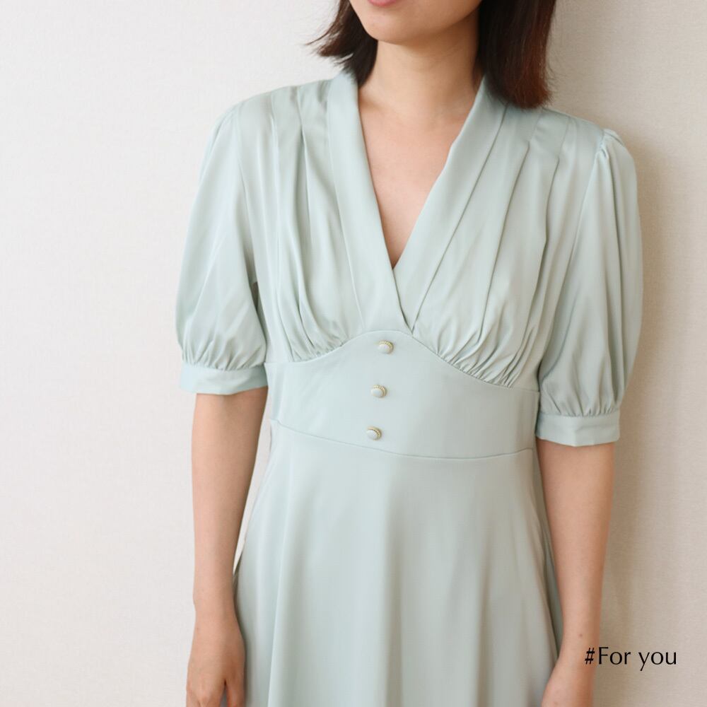 胸元に3つのボタンがついた、清楚ワンピース。ハイウエストで引き締まっているので、スタイル良く表現できます。どの色も淡いパステルカラーなので、春夏にぴったりのコーディネートが完成します。