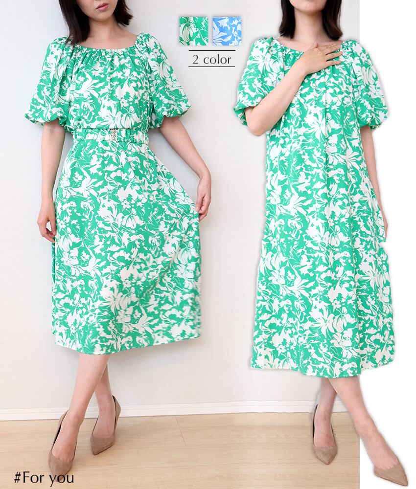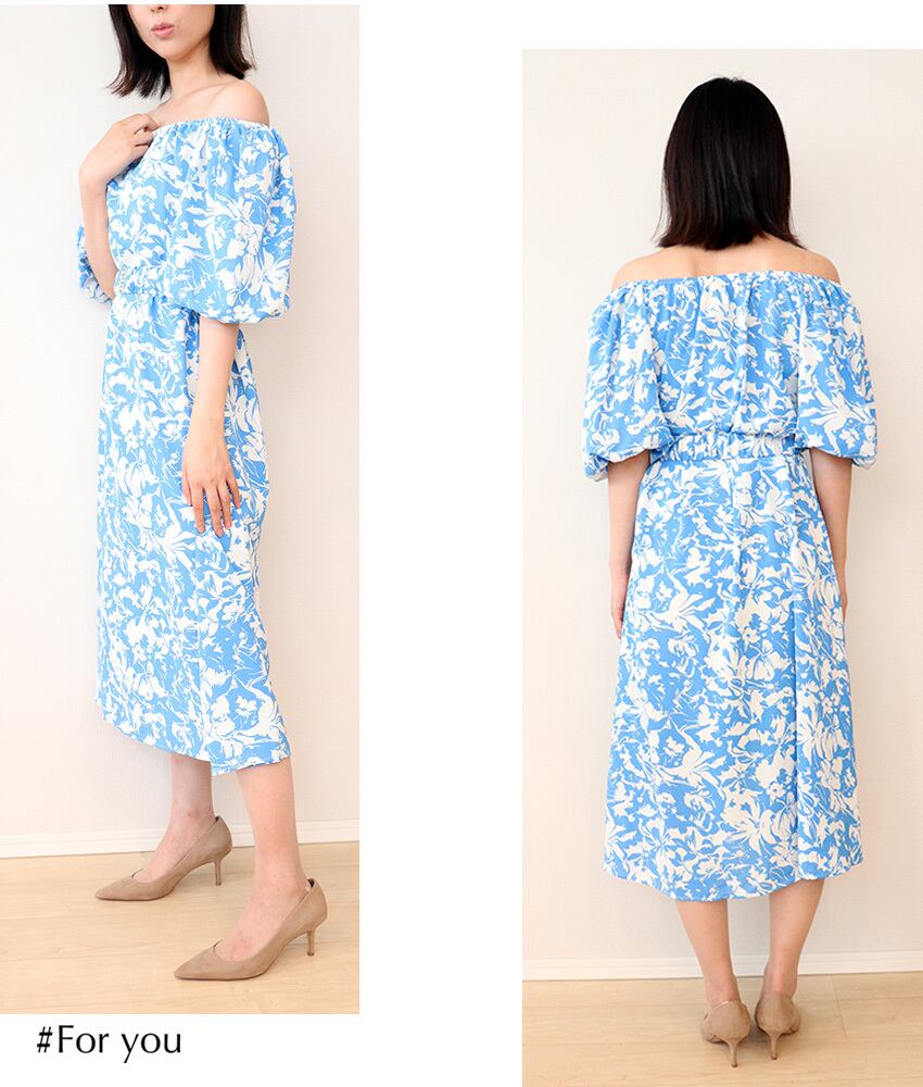 鮮やかな原色生地に真っ白な大花柄が泳ぐサマーワンピース。1枚で常夏気分を味わうことができます。バルーン袖が華奢腕魅せ効果ありです。