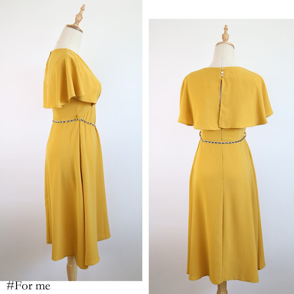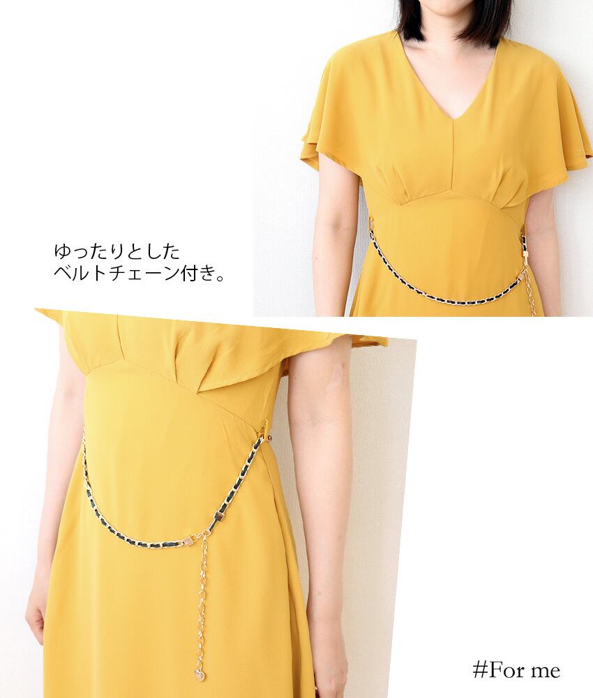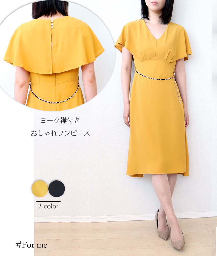 バックスタイルに大きなヨーク襟がデザインされたエレガントワンピース。ウエストはベルトチェーン付で、先にハート♡がついています。通気性バツグンで、涼しく着用できる優れもの。