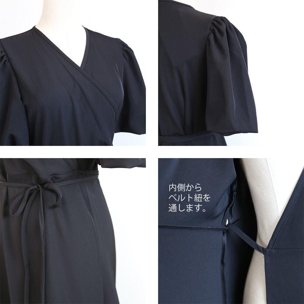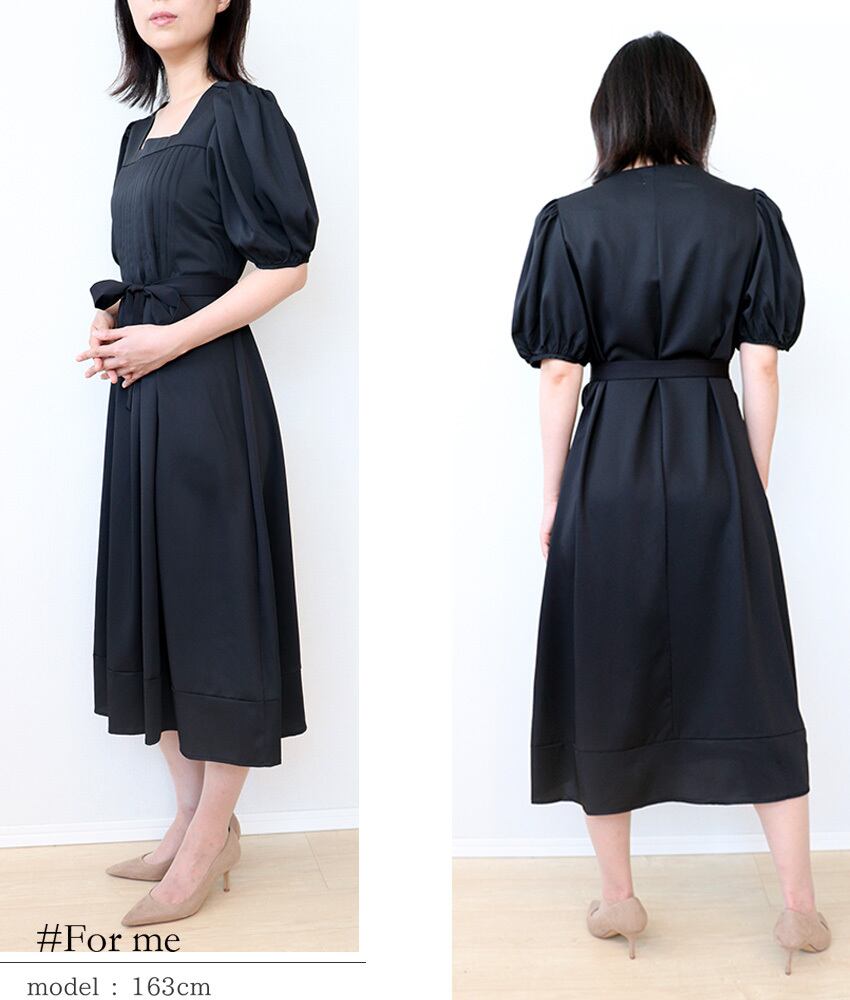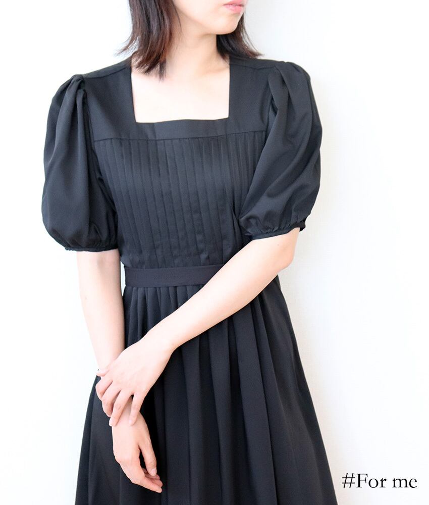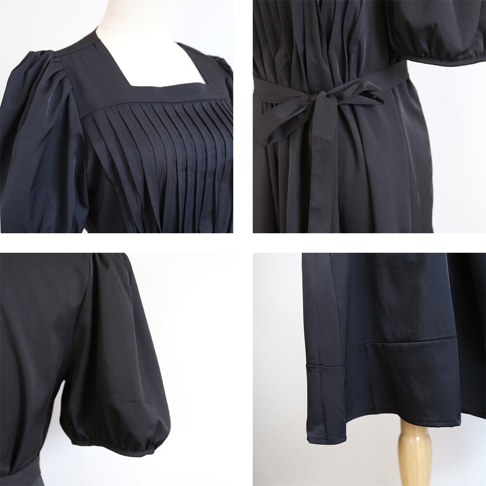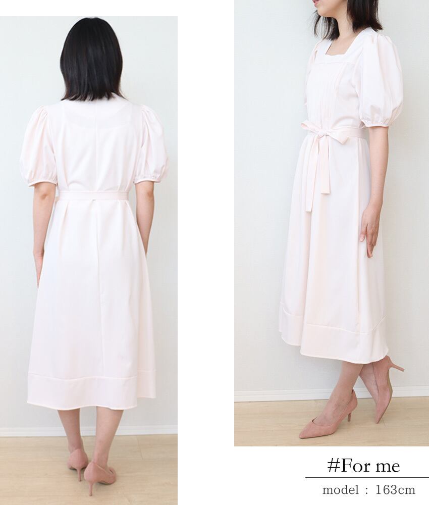ボリューム袖が華奢な雰囲気を醸し出してくれるワンピース。胸元の縦プリーツも個性的。ベルト紐は自由自在にお好みの位置で調節可能です。