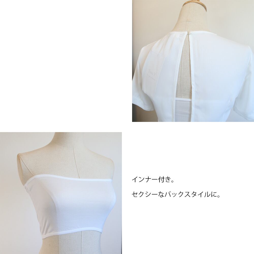 背中がパックリと開いたセクシーさを演出できるワンピース。ベルトチェーンの先にフックを、後ろ側で止めるとオシャレに着こなせます。嬉しい胸元のインナー付き☆