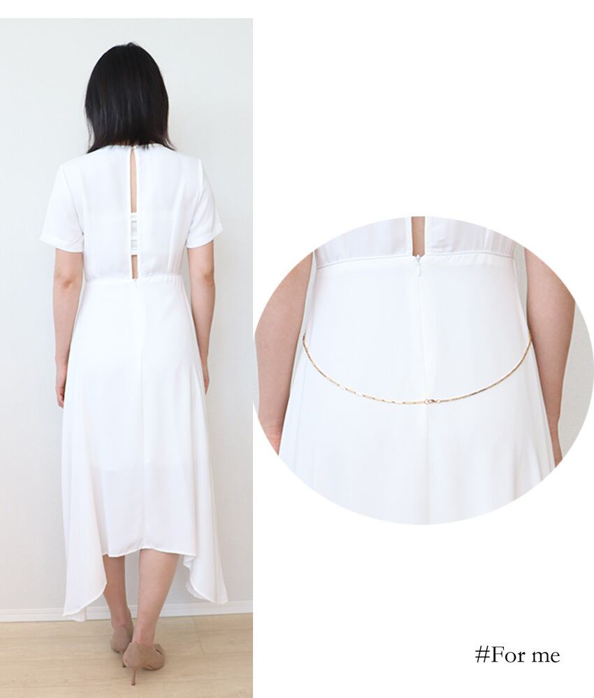 背中がパックリと開いたセクシーさを演出できるワンピース。ベルトチェーンの先にフックを、後ろ側で止めるとオシャレに着こなせます。嬉しい胸元のインナー付き☆