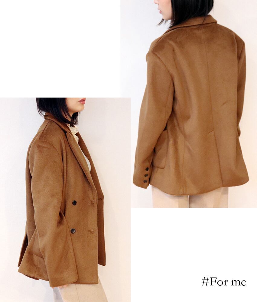 大きめサイズを羽織る今季流行りのジャケットコート。パンツ・スカートどちらでもコーディネートに合わせられるスタイルです。