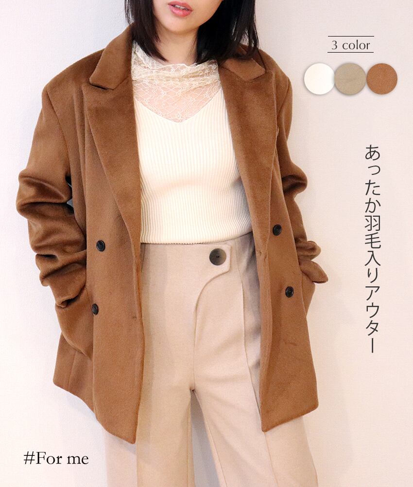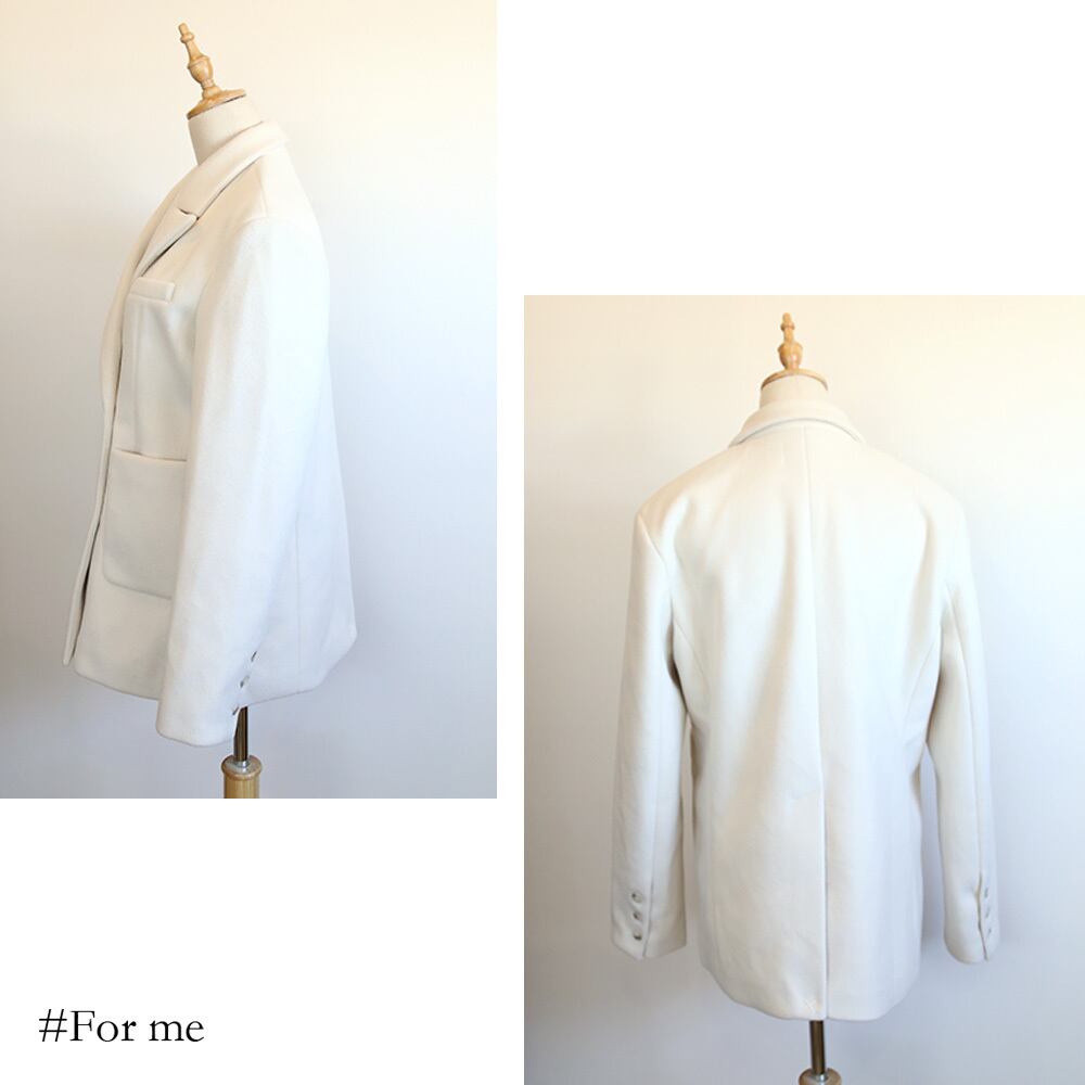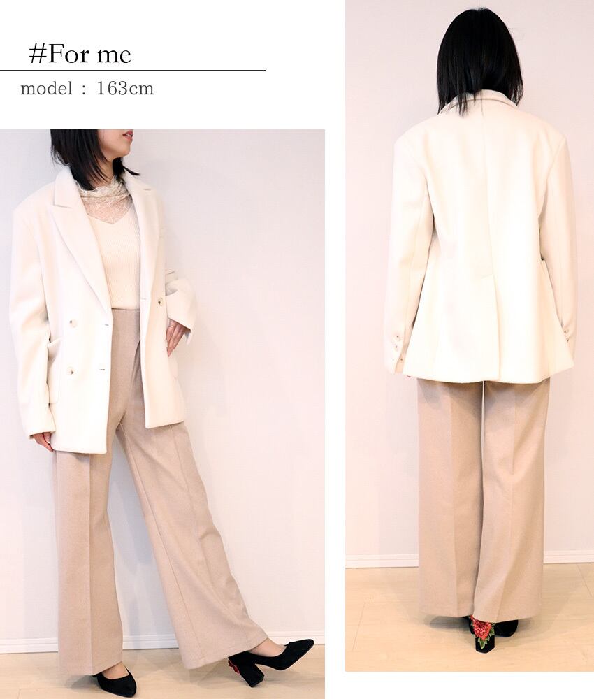 大きめサイズを羽織る今季流行りのジャケットコート。パンツ・スカートどちらでもコーディネートに合わせられるスタイルです。