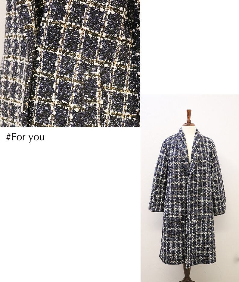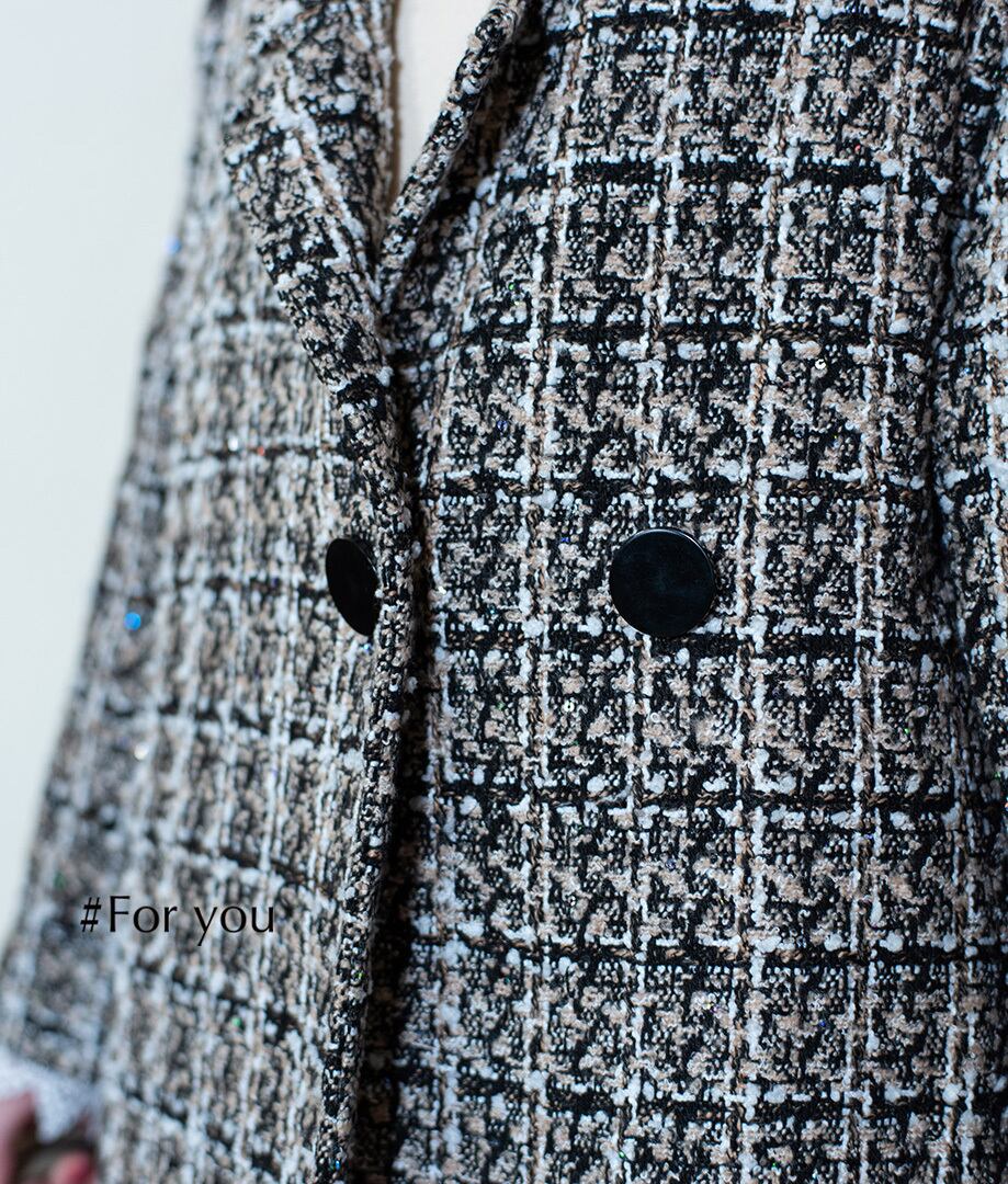 高級感あるツイードコート。散りばめられたスパンコールがキラキラ輝いて、さらに魅力を引き出してくれます。