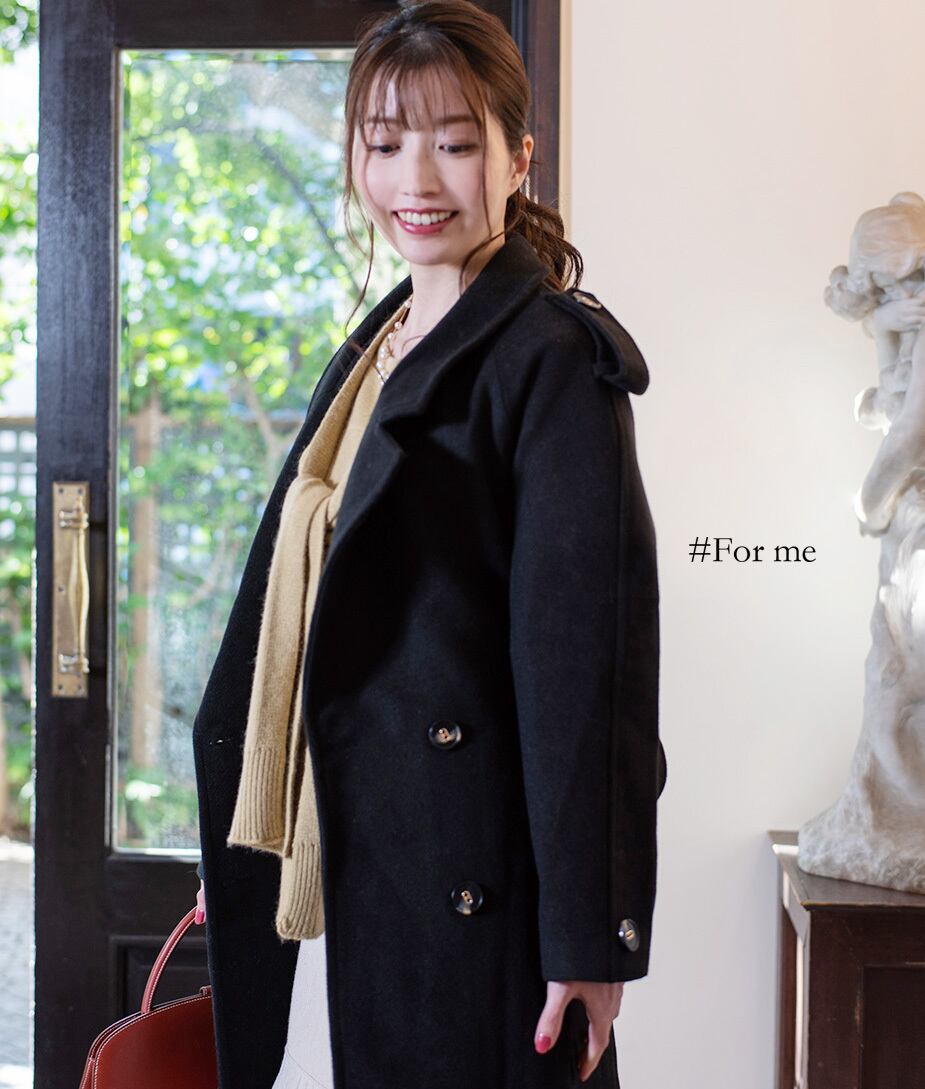 コーデが締まる定番ミリタリーコート。厚手の素材で防寒対策もばっちり。モカカラーはフェミニンなコーデにも合わせやすいです。