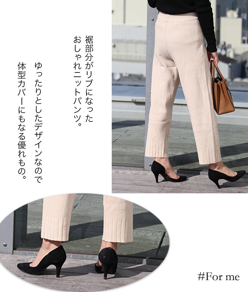ゆったりシルエットノリブニットパンツ。縦ラインが入っているので、脚長効果あり。