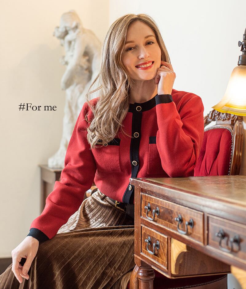 こっくりカラーのカーディガン。1枚で着ても羽織っても様になる一品。