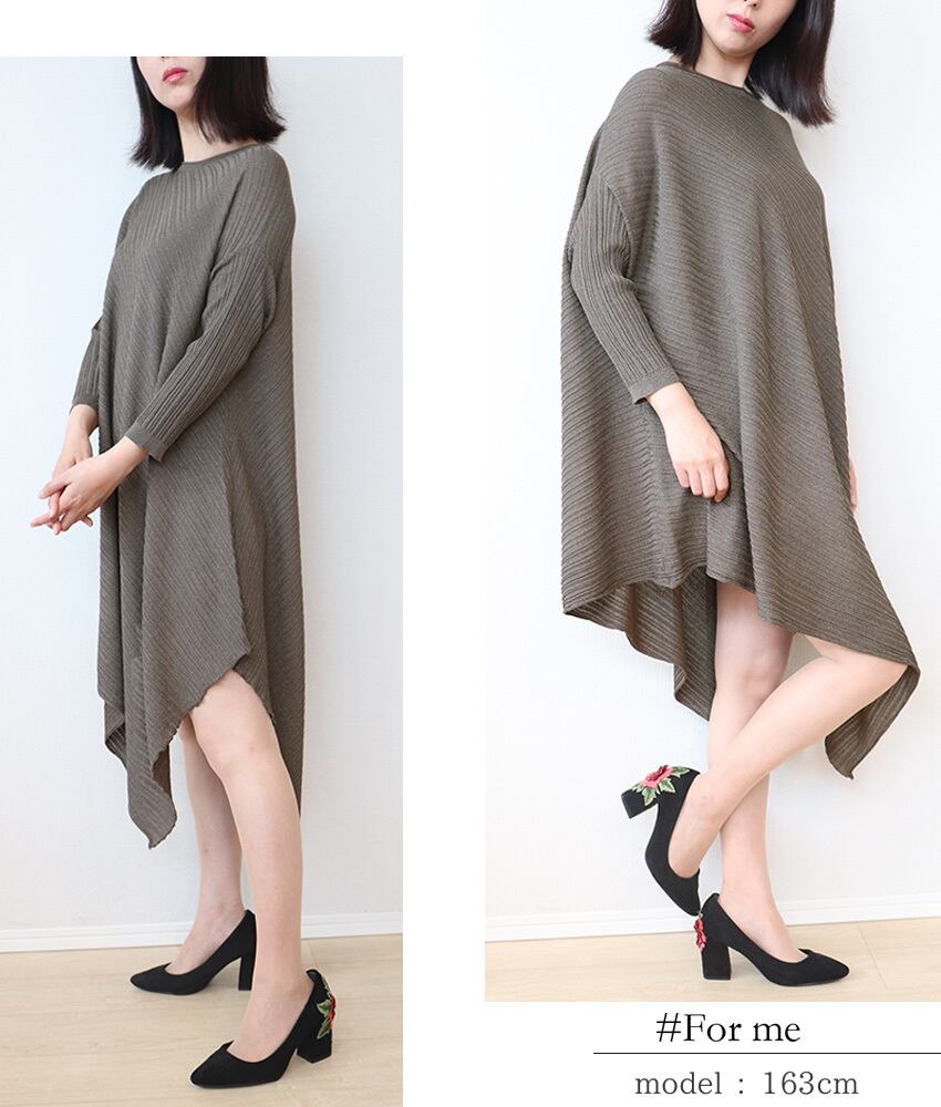 【新作入荷】シンプル裾アシンメトリー長袖ワンピース_e0012203045