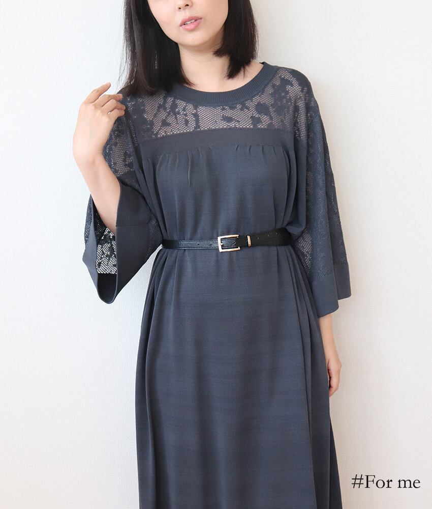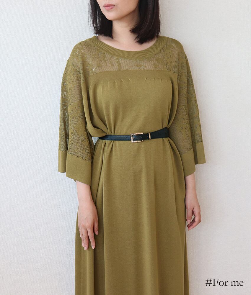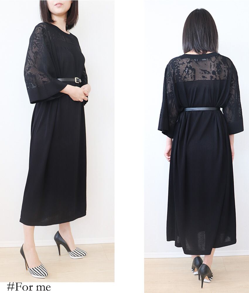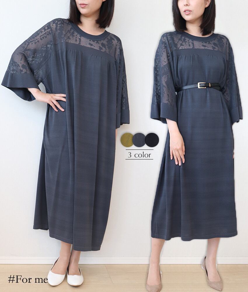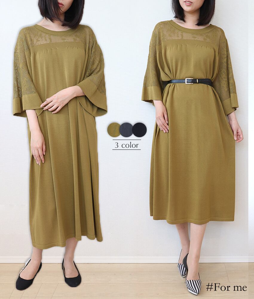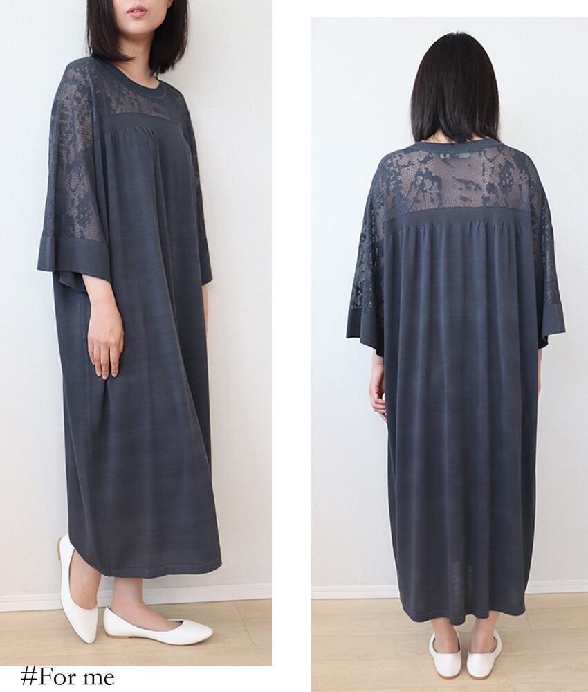 胸元、背中、袖がレース調で涼し気なワンピース。伸縮性もありゆったりと着用できます。